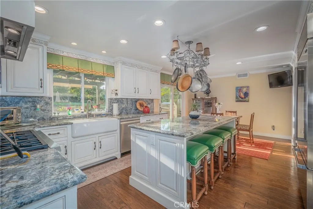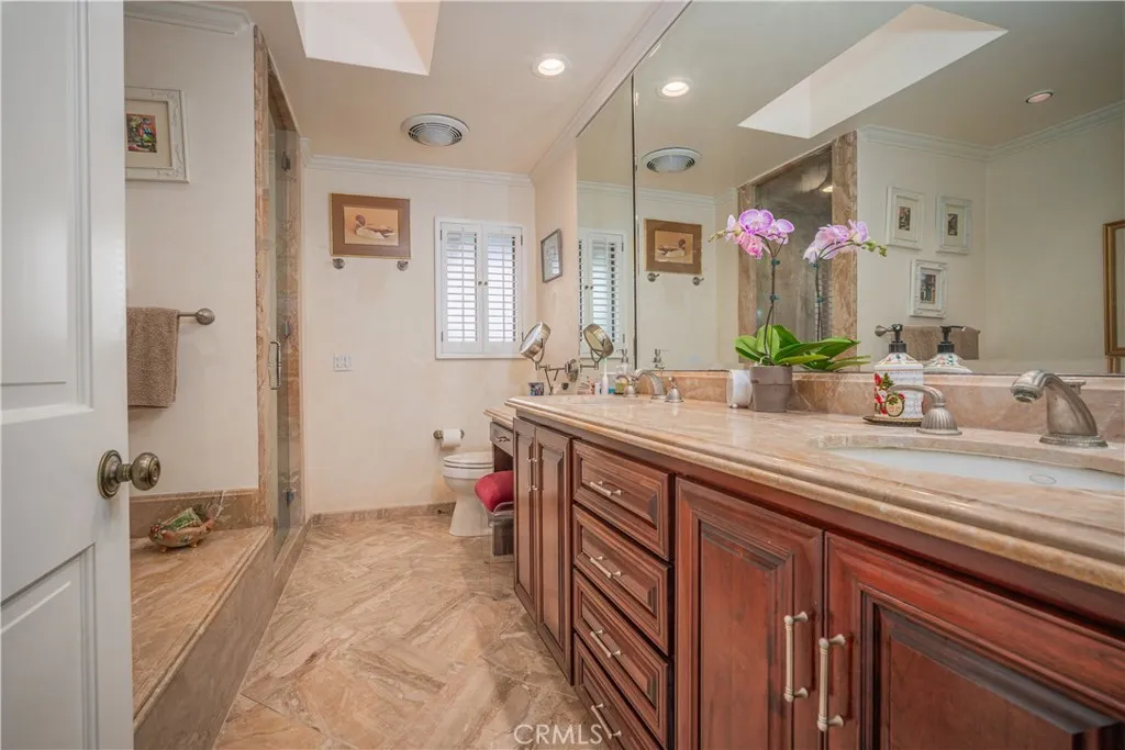 This luxury estate located in the prime & complete privacy location of "South Hills” area. The owner has thoughtfully upgraded with the top of the line materials and appliances. Large living room with stunning vaulted wood-beamed ceiling and expansive custom fireplace. Formal dining room with vaulted high ceiling and a large window that brings in the natural light. Gourmet kitchen with center island, top of the line appliances and custom cabinetry. Large family room with built in bookshelves. Custom drapes, anderson sliding doors, recessed lighting, crown moldings and hardwood flooring throughout the downstairs. Master suite with balcony to enjoy the beautiful backyard and the bathroom with soaking tub, steam shower and granite countertop. Completely private RESORT-LIKE backyard professionally landscaped with sparking pool/spa and large patio. This is an extremely well-maintained home. Upscale neighborhood. 3 car garage attached. Walking distance to South Hills golf course/ country club. South Hills schools and park. Showcase, Extraordinary, elegance all in this estate. Excellent school district. NO HOA fees.