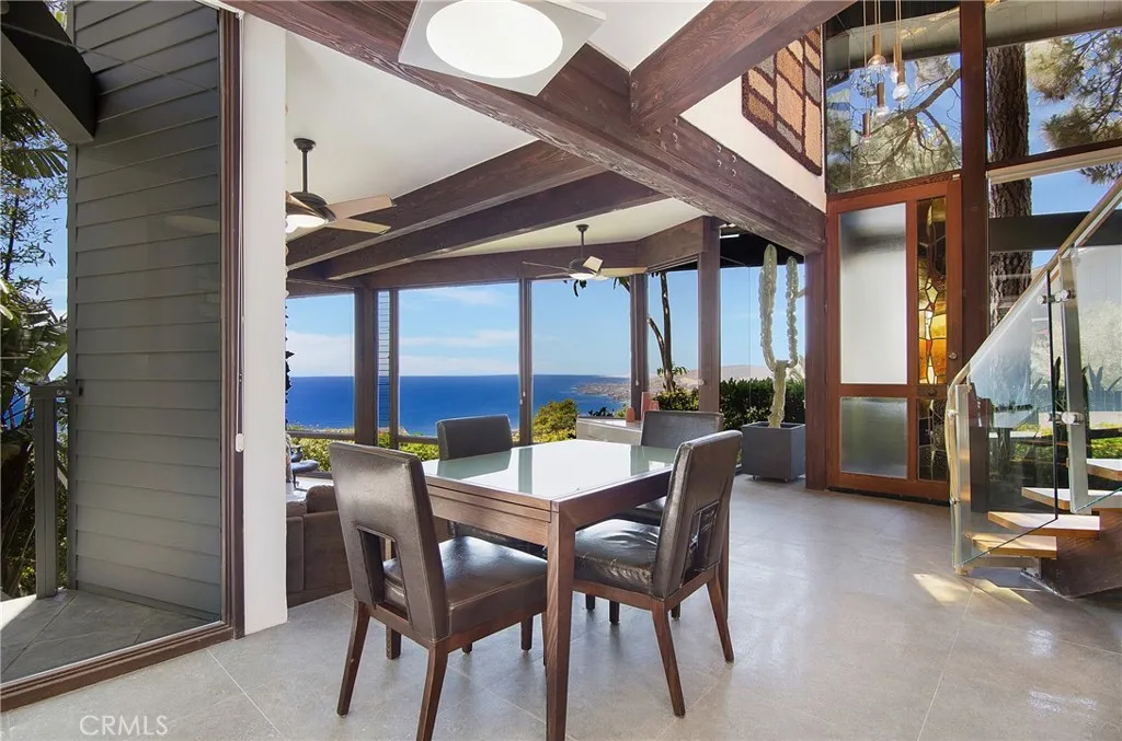 Spacious, private, a modern architectural masterpiece. Gorgeous single family home designed by Chris Abel. Extensively renovated with respect for the original architecture. Marvel at the incredible unobstructed panoramic ocean views from floor to ceiling windows throughout the home. Six blocks up the hill from Victoria Beach (adjacent to Montage Resort). Minutes from Laguna Beach village. Oceanview trails in the nearby hills. Home is outfitted with designer furnishings to compliment the modern architecture. Enjoy the romantic fireplaces. BBQ on the private outdoor deck. Read a book or enjoy dinner with the sweeping views at your feet in the outdoor dining area. Prepare a meal on the 48" Viking Range in the gourmet kitchen. Two car garage.