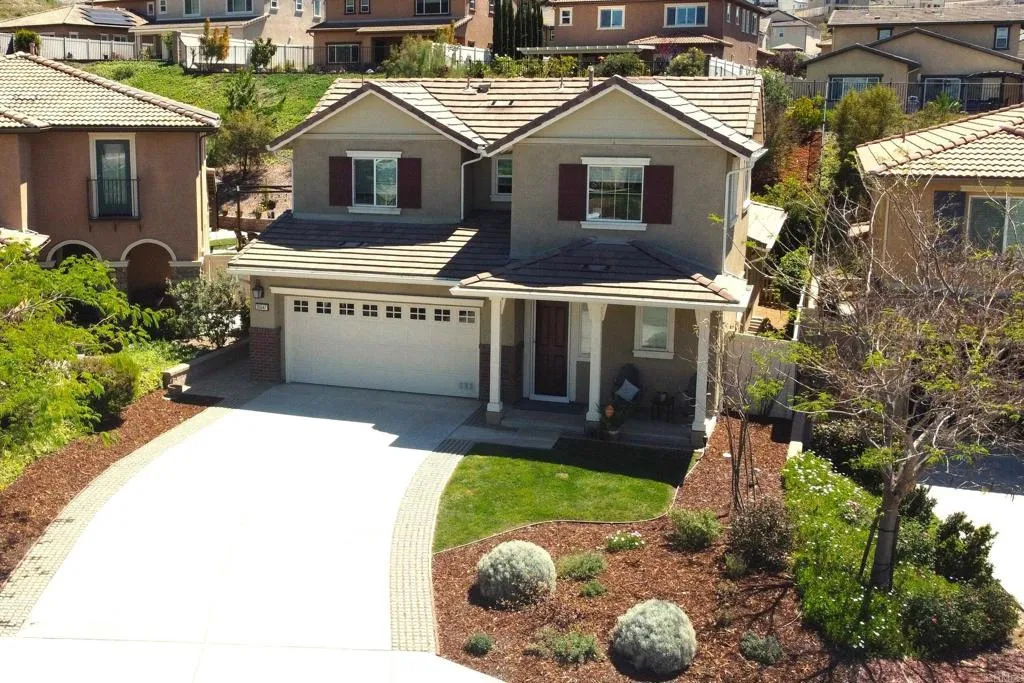 Enjoy the finest of Fallbrook living in this immaculate 3 bed, 3 bath luxury Horse Creek Ridge home with fully paid solar. Past the long spacious driveway and lush landscaping of the front yard, awaits your new home with a bright open concept kitchen, upgraded stainless-steel appliances and InstaHot faucet. The 4-seat bar connects diners with the family chef. Generous pantry helps keep large unwanted items off the granite countertops. The ground floor primary suite ensures you will enjoy the space without needing to walk the stairs. Primary bedroom enjoys a picture window view of the serenely private backyard and includes a large soaking tub, spacious step-in shower, and a massive walk-in closet. There is also a first-floor secondary bedroom next to a 3-piece bath. Upstairs you find the third bedroom next to a 3-piece bath and an expansive loft. Your private backyard features Italian stone patio and automated awning for shade on command complete with lush, low-maintenance landscaping provides a calming influence at the end of a long day as you take in the gorgeous Fallbrook sunset. Home also includes luxury vinyl plank flooring, high end window treatments (plantation shutters, remote control motorized roller blinds), and tankless water heater. High ceilings in the garage provide outstanding storage opportunities. Horse Creek Ridge is a community of recently built homes and offers a commuter-friendly location just minutes to both the 15 and 76; and includes amenities such as the Harvest House community center, pools, barbecues, playgrounds, sports complex, and direct access to the Monserate Mountain hiking trail network. You’re new life is just a short drive to a small town where you’ll see faces you know as you shop local grocery stores, coffee shops, restaurants, art studios, farmer’s market or attend many of the town’s fun events such as the Avocado Festival, Vintage Car Show, Farmer’s Market, Bob Burton Center for the Arts, Playhouse Theater, Art Center Shows, Library events, Veteran's Day, 4th of July and Christmas parades.