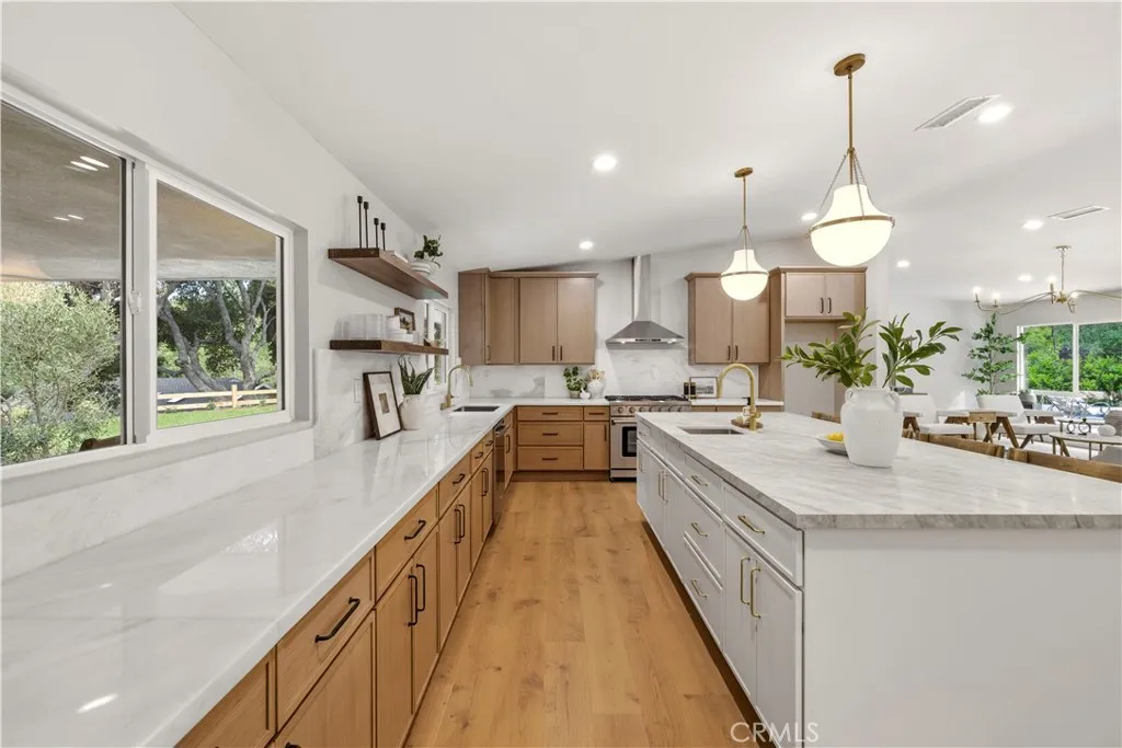 Welcome to this beautifully reimagined home, fully remodeled with permitted upgrades including a new roof, pool, electrical panel, and interior renovations. Featuring vaulted ceilings, new wood flooring, fresh paint, and abundant natural light through brand-new windows, the home offers a bright and open layout. The modern kitchen showcases quartz countertops, new cabinetry, and a sleek design, while both bathrooms have been fully remodeled with stylish finishes. Additional upgrades include new plumbing with sewer drain lines being replaced, as well as the HVAC system being upgraded for added efficiency and comfort. Step outside to a private backyard retreat with a fully upgraded pool, complete with new plaster. The space is designed for entertaining, featuring a custom horseshoe BBQ area. Mature oak trees, lush landscaping, a complete privacy hedge and a charming treehouse add to the appeal. Additional features include epoxy garage flooring, street access in the back of the property for additional recreational vehicles, a slurry-sealed driveway, and ample RV/boat parking with convenient backyard access. This turnkey property offers modern upgrades, quality craftsmanship, and exceptional outdoor living