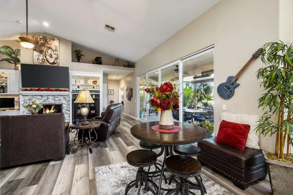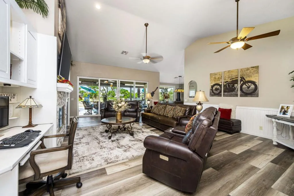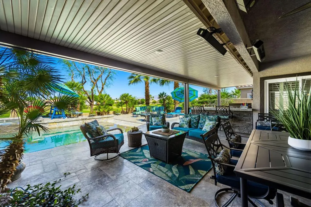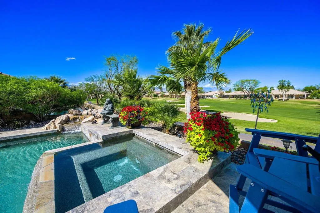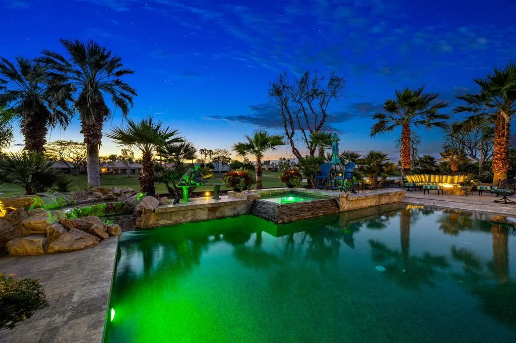 If you're searching for 'The Best of Indian Springs,' you've just found it! Designed for exceptional indoor-outdoor living and effortless entertaining, this stunning residence offers 2,719 square feet, 4 bedrooms, 3 bathrooms, and a spacious 3-car garage--highlighted by one of the largest and most impressive resort-style backyards in the community.From the moment you enter, you're welcomed by beautiful luxury vinyl flooring and an expansive great room that seamlessly blends comfort and style. Oversized, upgraded double sliding glass doors open wide to a truly spectacular covered patio--creating the perfect flow between indoor and outdoor living.The open-concept kitchen is built to impress, featuring a large center island, slab granite countertops, stainless steel appliances, and an oversized walk-in pantry. It connects effortlessly to the dining area, complete with a versatile dining/pool table--ideal for entertaining guests or enjoying memorable gatherings.Step outside and experience what truly sets this home apart. The backyard is a private resort--offering more functional living space outdoors than inside. Enjoy a custom PebbleTec pool with beach entry, play ledge, swim-up stools, cascading waterfall, and an elevated spa with its own observation deck--perfect for relaxing evenings under the desert sky.Multiple outdoor living areas invite you to unwind, including an oversized fire feature lounge, tranquil water features, and a fully equipped covered patio with built-in BBQ, dining area, infrared heaters, and a large-screen TV--creating the ultimate year-round entertainment space.The primary suite is a private retreat, generously sized with serene views of the pool and outdoor living areas. The spa-inspired bathroom and expansive custom walk-in closet complete a space designed for comfort and luxury. Three additional bedrooms are thoughtfully positioned at the front of the home, offering privacy and flexibility for family and guests.This is a rare opportunity to own one of Indian Springs' most exceptional homes--meticulously upgraded, beautifully maintained, and designed to elevate everyday living.Come experience it in person--this one truly stands apart.