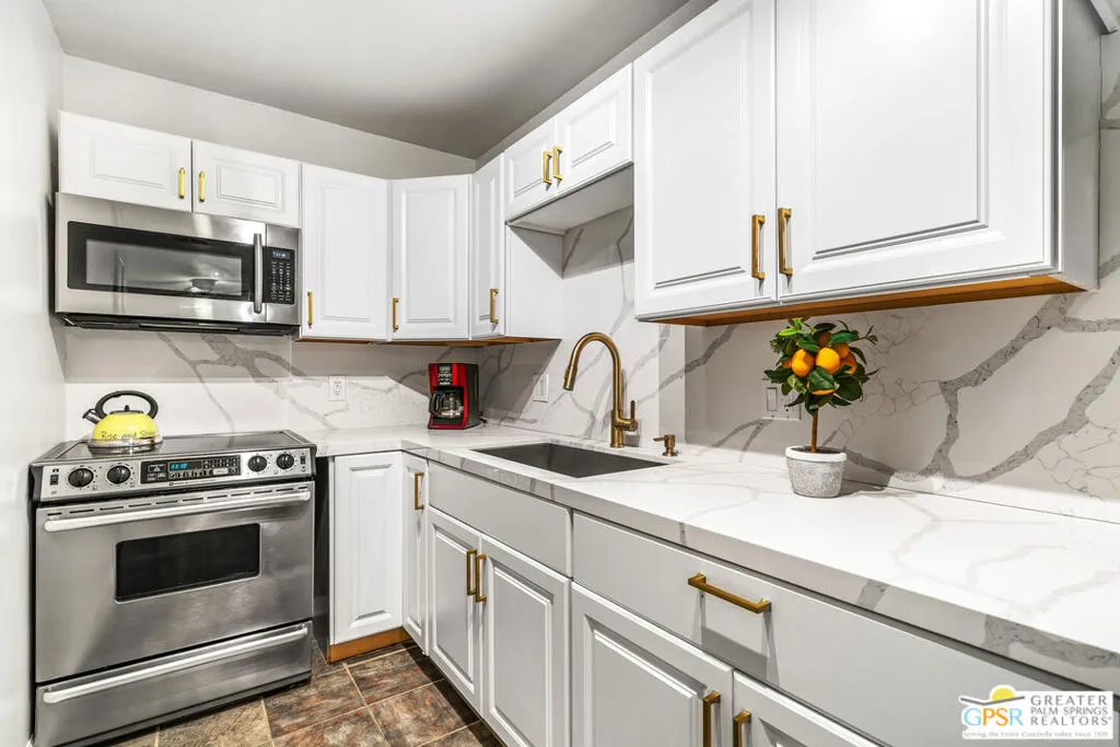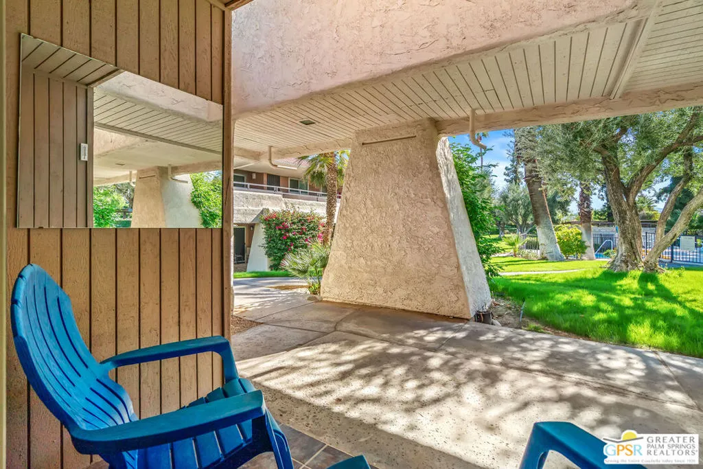 Bask in the beauty of desert living in this stylishly updated single-story one-bedroom, one-bath condo showcasing spectacular views of the pool and surrounding mountains. Thoughtfully refreshed with modern finishes, this inviting retreat blends comfort and charm with effortless appeal. Shutters frame the windows throughout, welcoming in natural light while offering privacy when desired. The bright and open living area flows seamlessly to a quaint patio, perfect for morning coffee, sunset cocktails, or simply enjoying the peaceful resort-style setting. The kitchen features sleek countertops, updated appliances, and ample cabinetry, while the spacious bedroom offers a restful escape filled with natural light. The bathroom has been tastefully updated, completing the home's fresh contemporary feel. Set within a beautifully maintained community with pools, lush landscaping, tennis courts, and stunning mountain backdrops, this condo captures the essence of relaxed desert living just minutes from downtown Palm Springs, where shops, restaurants, and entertainment await. Ideal as a full-time residence, vacation getaway, or investment property.