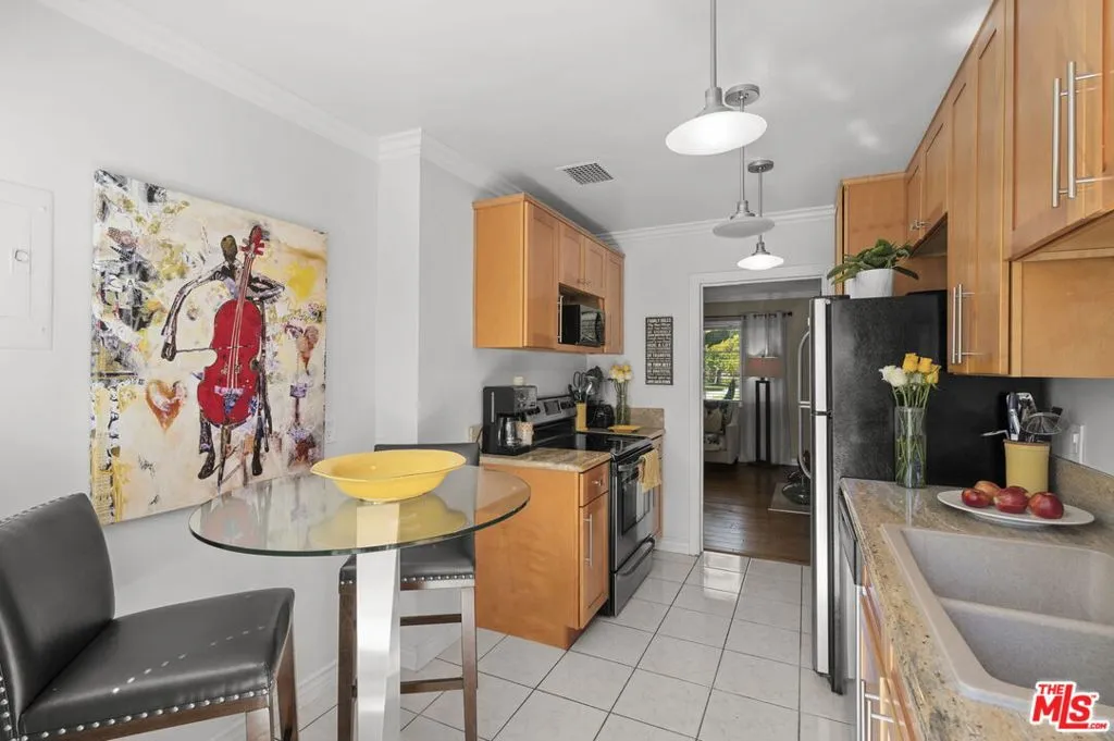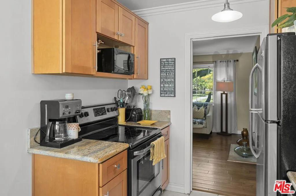 Experience the charm of this immaculate 2-bedroom, 1-bathroom lower-level condo, perfectly positioned to showcase stunning views of Baldwin Vista, Kenneth Hahn National Park, and the lush greenbelt within the iconic Village Green complex, a National Historic Landmark and Monument that offers significant property tax savings via the Mills Act designation. Nestled between Courts 7 and 8 on the Coliseum side, this 818 SF home boasts impecable hardwood floors, crown moldings, remodeled bathroom and kitchen with all appliances included, abundant closet spaces, a private patio, and a detached garage for one car. Set amidst an urban forest of 68 acres of lush grounds and over 1,500 trees, Village Green offers 24/7 patrolled security, onsite management, and a tranquil retreat with easy access to Culver City, West Adams, two Expo Line stations, Whole Foods, LAX, and vibrant dining and shopping. Live in a serene oasis just minutes from the best of L.A.!