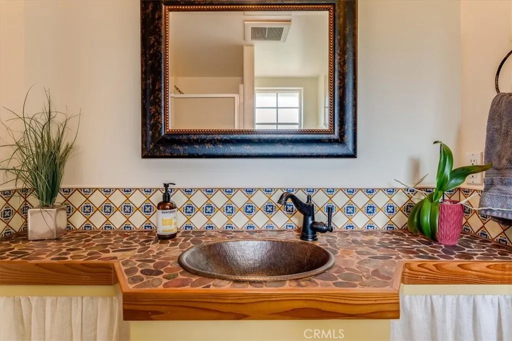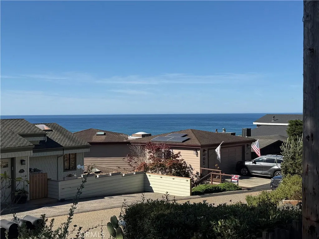 This Absolutely Charming, single level, Happy Hill home is full of desirable features. First and foremost, it is a single level home with an ocean view from both the interior and the front garden! Secondly, it has a vacation rental license plus there is a main house and a guest cottage. The main house has an open floor plan with a 31,000 BTU gas free standing fireplace in one corner of the living area, and an ocean view in the other. A charming, tiled kitchen has tile backsplashes, stained glass front upper cabinets, and both tile and butcher block counters. A garden window with a peek of ocean view is visible right from the kitchen sink. The dining nook connects the kitchen and living room. Extra storage is found in the large pantry at the end of the hall. There are three bedrooms, a bathroom and a half, and interior laundry room. One of the bedrooms has a sliding glass door to the patio and gardens, another has an exterior door to the side yard. Charming tile is found throughout the home. One bathroom has a solar tube for extra sunlight, there is a tankless hot water heater, and the home has Solar for zero or next to nothing electricity bills. The exterior of the property has been lovingly curated. There are cement patios and meandering brick paths between the well-maintained gardens. There are many places to sit and enjoy the birds, a glass of wine, or a cup of coffee in the morning. There is even an outdoor bathtub! The guest cottage has a gas fireplace, tiled bathroom, and large guest kitchen with a door to the back patio. There is also a heat pump mini split. This incredible location is a short jaunt to town or Moonstone Beach.
