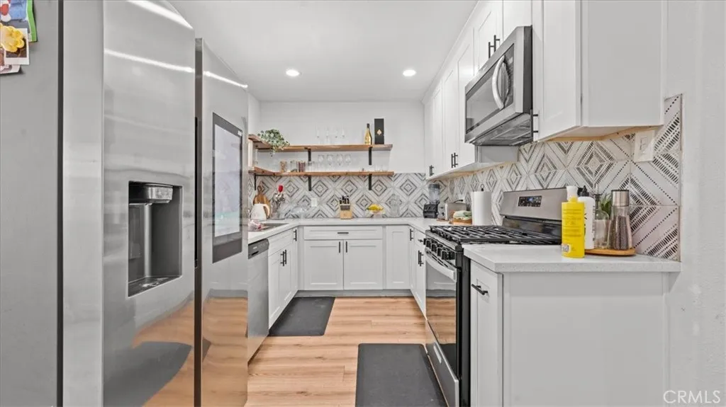 Completely remodeled inside and out, this home comes with a brand new roof and is ready to go. The kitchen shines with white shaker cabinets, quartz counters, geometric tile backsplash, and stainless steel appliances including a gas range. New flooring and recessed lighting run throughout. The primary bedroom features its own fireplace, and both bathrooms have been fully redone. Solar panels already installed, two-car garage, and a backyard with plenty of room to make your own. From the moment you pull up, this home makes a statement!