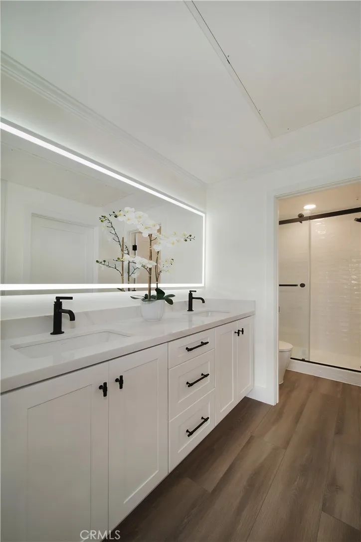 Situated in the gated community of VILLA POINT with panoramic golf course views to Fashion Island, this one level remodeled end-unit condo includes a secluded gated front courtyard area, golf course view from all main rooms, an open design with remodeled kitchen with breakfast area, designer tile, quartz countertops, Kohler fixtures, gas stove and wine refrigerator, living room with fireplace, two primary suites with new lavish baths, smart toilets, and walk in closets, wood-look flooring throughout, new windows and sliders, recessed lighting plus an attached garage with new epoxy flooring and large finished bonus storage area. The living room and both primary suites open to a large double patio area perfect for easy and effortless entertaining and enjoying the nightlights view to Fashion Island or a Classic Golf Tournament front row seat. The beautiful nearby spa, pool and workout room are steps away. Live the fun and festive beach lifestyle, just moments from shops, cafes and fine dining, Balboa Island, the Newport Beach Country Club, Back Bay trails and charming Corona del Mar, providing resort-style living all year around.
