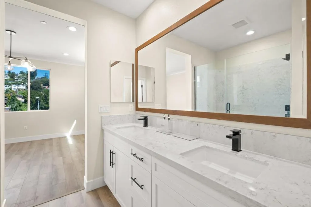 Located in the Toler Heights neighborhood in Oakland. This end unit home features four bedrooms, direct access two car garage, entry level bedroom with private bath perfect for guests or use as a home office or gym. Designer selected upgrades, stainless steel kitchen appliances, recessed LED lighting, solar panel system and much more!