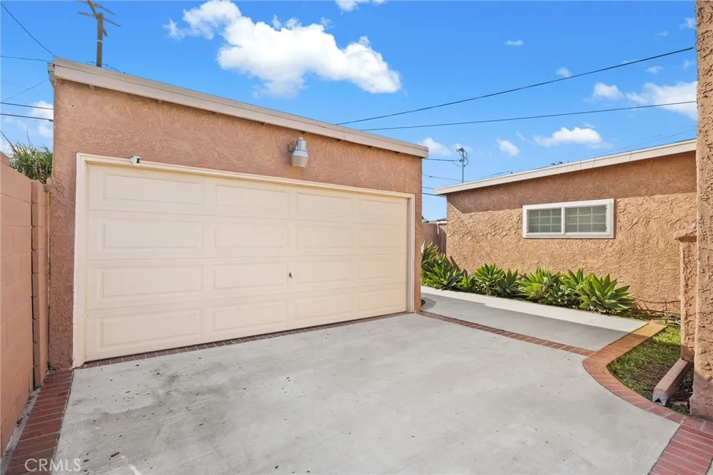 Quintessential 1936 Bungalow Full of Character & Charm! Step inside this beautifully preserved bungalow where timeless details meet modern comfort. This 3-bedroom, 2-bath home is rich with original character—from the intricate Spanish-style fireplace to the exposed wood beam ceilings and classic casement doors and windows with original glass door knobs. The spacious living room, bathed in natural light, flows effortlessly into the dining area—perfect for hosting gatherings. Dark, rich wood floors run throughout the home, adding warmth and elegance. The fully remodeled kitchen is a dream, featuring abundant storage, crisp white cabinetry, butcher block countertops, open wood shelving, and stainless steel appliances—including a four-burner range with griddle, apron sink, vent hood, and dishwasher. The oversized primary bedroom is a serene retreat with a tongue-and-groove ceiling, exposed beams, an extra-large walk-in closet, and a luxurious en suite bath with dual sinks, custom tile work, and a dual-headed shower. Two generous secondary bedrooms offer unique touches—one with a custom whitewashed brick wall, the other with charming curved ceilings. Thoughtful architectural details abound, from wainscoted hallways and original wood doors to an additional bath featuring a soaking tub, walk-in shower, and expansive vanity. A full-size interior laundry room adds convenience. Step outside to a spacious backyard that flows seamlessly from the interior, offering the perfect space to relax, entertain, or dream up your own outdoor oasis. The detached garage offers potential for an ADU conversion, and the extra-long, gated driveway with porte cochère provides ample covered parking and added security. Don’t miss this beautifully appointed home, filled with unique character, quality updates, and special touches throughout—truly one-of-a-kind!