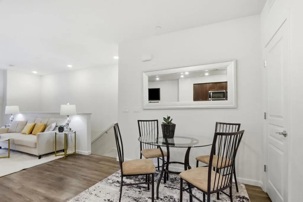 Walking distance to Bart. Welcome to this charming 2-bedroom, 2-bathroom home located in the vibrant city of Milpitas. This home offers a seamless blend of comfort and style. The kitchen is a chef's delight, featuring a gas cooktop, dishwasher, exhaust fan, garbage disposal, and a convenient island with sink. Additional kitchen amenities include a microwave, gas oven, and a self-cleaning oven for easy maintenance. Enjoy meals in the formal dining room, or relax in the kitchen/family room combo. The home boasts high ceilings and energy-efficient features such as double pane windows, energy star lighting, and a tankless water heater. Flooring includes a mix of carpet, laminate, and tile, adding to the home's appeal. Stay cozy by the fireplace, and enjoy the convenience of central air conditioning and central forced air heating. Fresh painting. Great location close to Great Mall, Milpitas BART, VTA, fwy 880/680 for commuter ease. Top Rated School District- Mabel (10 of10), Ranch (9 of 10), and Milpitas High ( 9 of 10). No rental restriction. Won't last long!