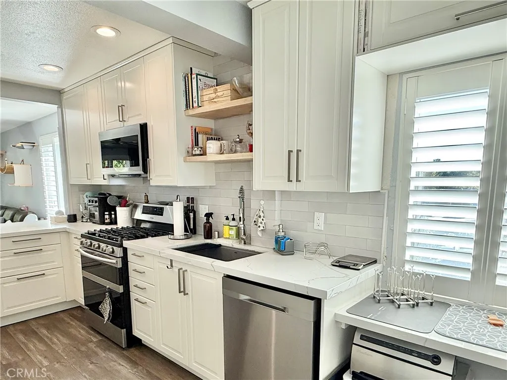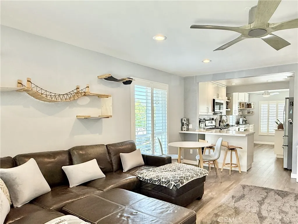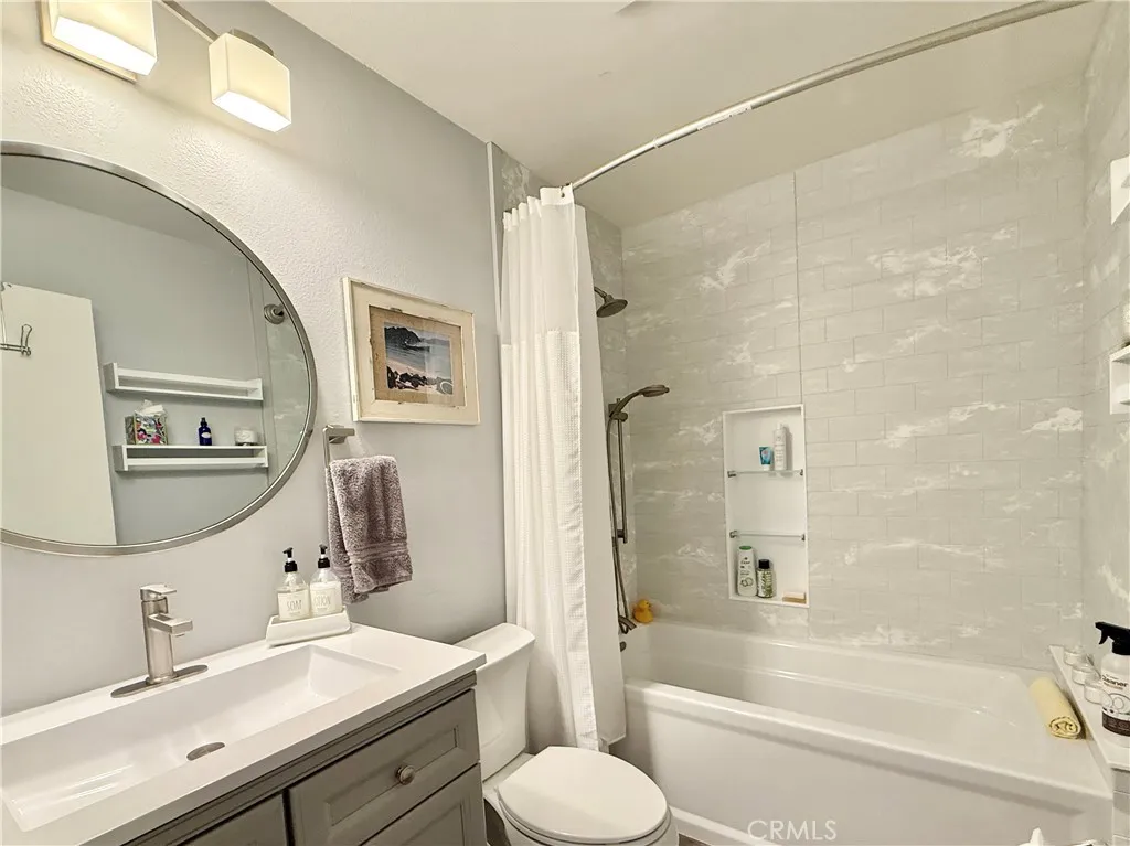 Welcome home to 22256 Caminto Danubo, ideally located in the desirable Laguna Village community in North Laguna Hills. Enjoy wonderful community amenities, nearby parks and scenic trails, easy access to beaches, and close proximity to dining, shopping, and entertainment. With the freeway just minutes away, this location truly offers the best of convenience and lifestyle. Enter through the gated front courtyard and double-door entry, where you’ll immediately be drawn to the treehouse-like views through the rear double sliding glass doors that lead to a spacious tiled balcony—perfect for relaxing or entertaining. The beautifully remodeled, spacious kitchen features a breakfast bar and opens seamlessly to the comfortable living area, creating a light-filled and inviting space. There is room for a kitchen table or the option to incorporate a dining area within the living space. Throughout the home, all windows and sliding doors are dual-pane and enhanced with custom shutters. The primary bedroom is conveniently located on the main level and features a remodeled custom en suite bathroom with a walk-in shower, along with a separate half bath that guests can access. The entire upper level showcases high-end luxury vinyl flooring, adding both style and durability. Down the carpeted stairs are two additional bedrooms, each with generously sized closets, along with a recently remodeled guest bathroom featuring a shower-in-tub combination, with extra long tub. A sliding glass door opens to a private back patio and a large greenbelt area, providing additional outdoor space to enjoy. One of the unique features of homes in Laguna Village is the flexible front courtyard space. The home includes a direct-access single-car garage with a roll-up door and new "smart" garage door opener and plenty of storage, and the adjacent courtyard can function as an outdoor patio for additional living space or as a carport area with its own sliding garage door. There is also plenty of nearby unassigned parking available. Please see supplemental for additional home features and community amenities, architectural standard conditions, and OCFA Defensible Space Compliance.