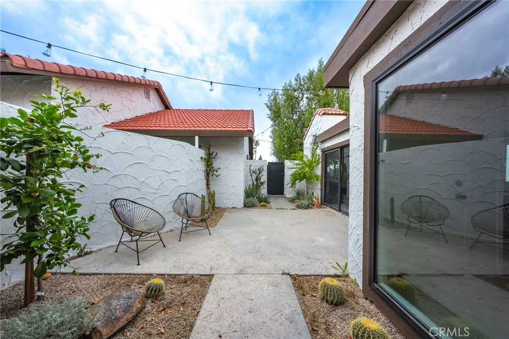 Experience a level of design and finish that rivals most multimillion dollar homes in Palm Springs. Situated in arguably the best location within Canyon Sands, this meticulously renovated and furnished 3-bedroom, 2-bathroom (or 2-bedroom plus den) floorplan offers the privacy and feel of a single-family home, complete with no shared living space walls, a private walkway, and an attached two-car garage. The interior is a masterclass in modern luxury, featuring large-scale porcelain tile, new dual-pane windows, and designer touches including Zia Tile, Emtek hardware, and a classic Nelson Bubble pendant. Plus all designer furnishings, art, and accessories are available making it completely turnkey! The gourmet kitchen has been reimagined from top to bottom with custom cabinetry, quartz countertops, and premium KitchenAid appliances. Flowing seamlessly from the kitchen, the living area impresses with vaulted wood-beam ceilings, a cozy fireplace, and a custom bar with floating shelving. Both bathrooms are spa-like retreats, updated with walnut vanities, quartz tops, and high-end Hansgrohe and Signature Hardware fixtures. The two private patios have been freshly landscaped and offer the perfect place to relax or entertain. Canyon Sands spans 33 lushly landscaped acres with tennis, pickleball, saunas, and seven sparkling pools and spas. HOA amenities include high speed internet, premium TV, water, sewer, plus grounds and roof maintenance. Walking distance to the famed Parker Palm Springs and just moments from spectacular shopping, dining, and hiking. Rarely does something this spectacular come available, especially in this price range. You don’t want to miss it!