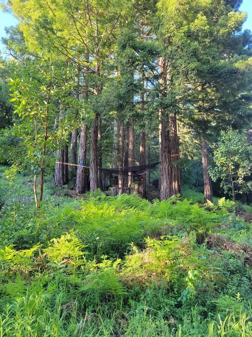 This 23-acre hidden gem is home to majestic oak trees, ancient redwoods and sweeping mountain views with unforgettable sunsets and endless stargazing. A rare blend of privacy, usable land, and natural beauty, this is a place to create something truly special. The land features multiple RV sites and camping areas, making it ideal for guests, retreats, or extended stays. A stunning 14-ft-deep pond surrounded by imported sand, creating a resort-like setting for swimming, lounging, and enjoying warm sunny days. Existing infrastructure includes a productive well, solar system, backup generator, propane, and high-speed satellite internet. The property includes a 26' Rainier yurt with radiant heated floors and Brazilian Ipe wood flooring. Interested in gardening or permaculture? The property includes a deer-fenced garden with 22 fruit trees and full sun exposure throughout the day, offering excellent growing conditions and space for animals or expanded agricultural use. Located approximately 35 minutes from Boulder Creek, the property is accessed by a scenic 15-minute drive along a combination of paved, gravel, and dirt roads, offering a balance of accessibility and seclusion. A truly unique property where privacy, views, sun, and water come together to create a one-of-a-kind retreat.