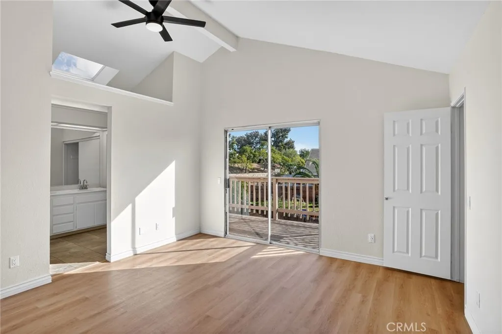Fantastic two story 3bd/2.5ba home on a cul de sac in the Box Springs area of Moreno Valley. Great location, north of the 60 freeway, close to the M Mountain. This home features new paint and new flooring throughout its formal living and dining areas, family room, bedrooms and bathrooms. Spacious kitchen with new stainless steel stove, hood and dishwasher, and a bar counter opens to the family room. Vauled ceilings in the living and dining room. This home features a 2 car attached garage, and balcony off the primary upstairs bedroom, which includes a walk in closet and ceiling fan.