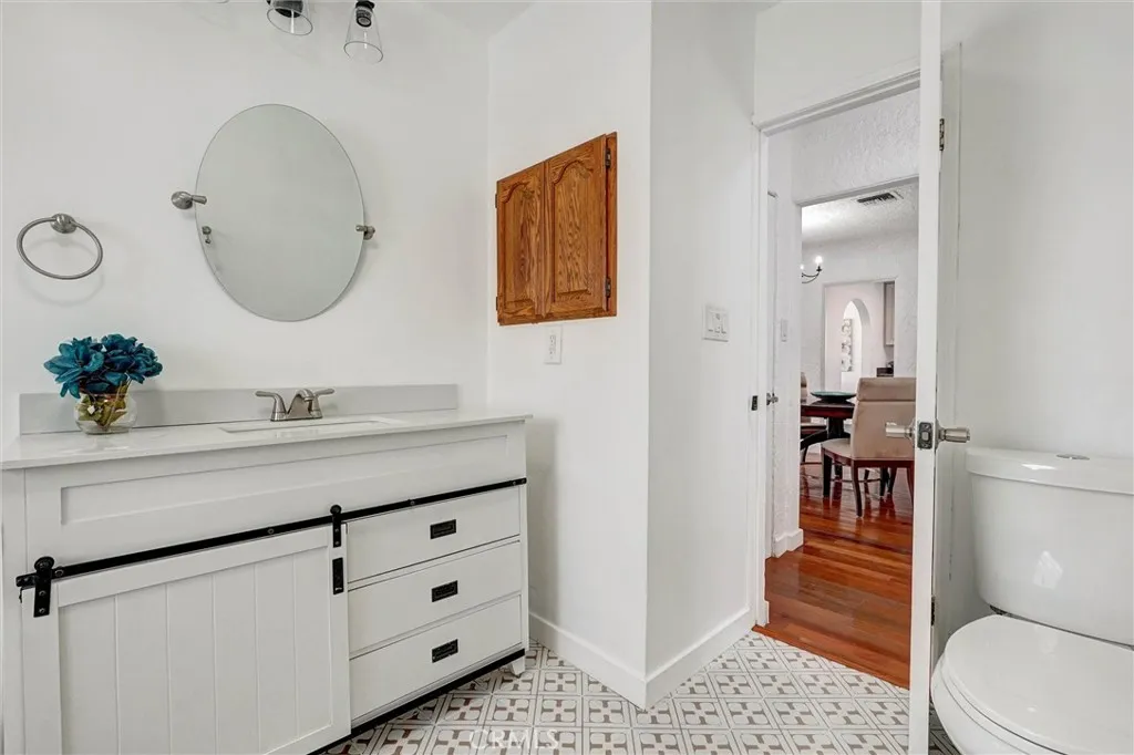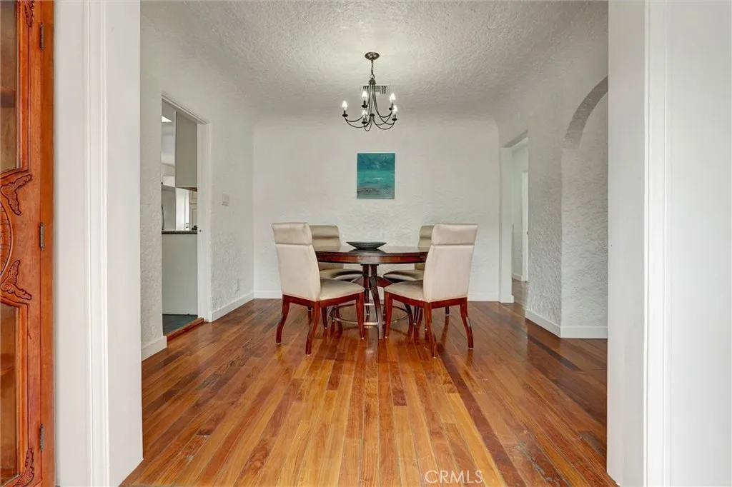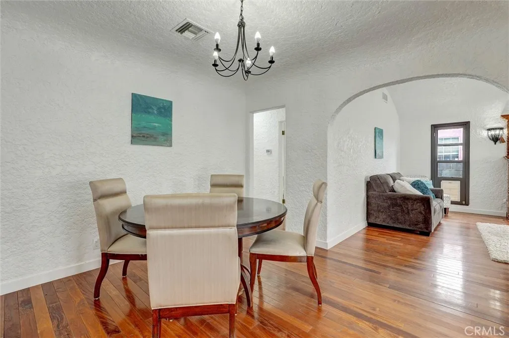 Romantic Spanish charmer with arches, original hardwood floors, and seamless indoor-outdoor living in prime North Hollywood. This beautifully updated home blends timeless character with modern comfort, featuring fresh interior/exterior paint, a cozy fireplace, and abundant natural light. The updated kitchen with new tile opens to a sun-filled bonus space—ideal as a breakfast nook, dining area, or home office. The bathroom offers a jetted spa tub for a relaxing retreat. French doors from the bedroom lead to a private backyard deck, perfect for entertaining or unwinding. The spare room adjacent to the garage houses a fully functional sauna. The freshly landscaped front yard features newly seeded grass and a fruit-producing lemon tree. Additional highlights include inside laundry, new water heater, and permitted electrical panel upgrade with full rewire. Detached double garage offers excellent ADU potential. Close to the NoHo Arts District, Universal CityWalk, and local shops and restaurants.