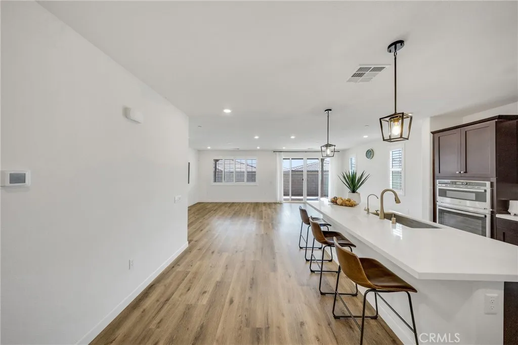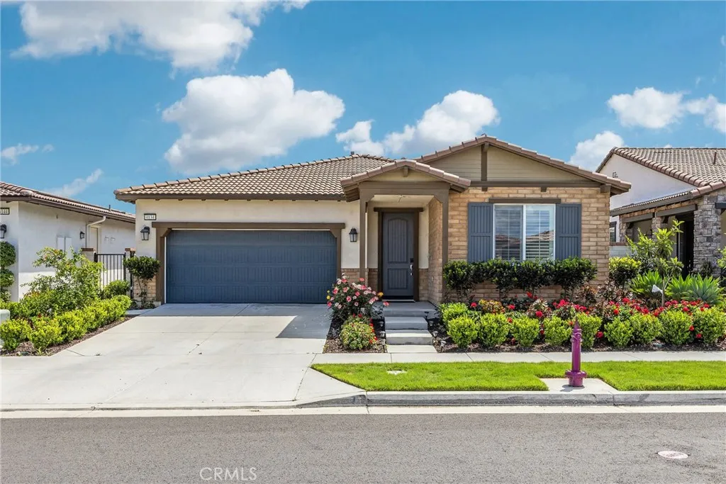Highly desirable Esperanza 55+ gated community! This resort-style, low-maintenance home is ideally located just steps from the clubhouse. The community features exceptional amenities including a pool, fitness center, pickleball courts, BBQ areas, fire pits, and a dog park. Inside, discover a bright and open layout with high ceilings, a spacious living area, and a modern kitchen centered around a large island. Oversized sliding glass doors connect seamlessly to the backyard patio, creating a wonderful indoor-outdoor living experience. The primary suite includes a large walk-in closet and a spacious en-suite bathroom. Notable property features include brand-new flooring throughout, a whole-house water filtration system, and a fully paid-off solar system. The beautifully maintained grounds offer a loquat tree in the front yard and a pomegranate tree in the backyard. Super convenient location close to Costco, 99 Ranch Market, a future Whole Foods (opening 2027), and providing easy access to the 15, 60, and 91 freeways. Located approximately 15 minutes to Ontario International Airport. This home is perfectly designed for a comfortable and convenient lifestyle.