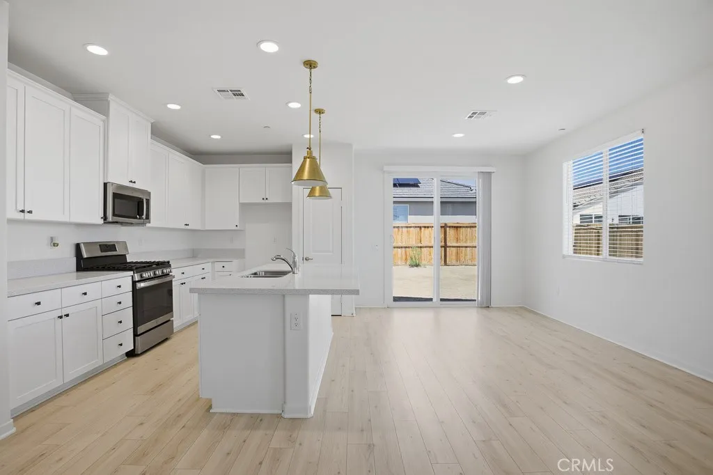 Welcome to this beautifully maintained newer construction home built only a few years ago, located in a quiet cul-de-sac in the growing community of Rosamond. Barely lived in and truly turnkey, this single-story residence offers the perfect blend of modern design, energy efficiency, and everyday comfort. Featuring 4 bedrooms and 2 bathrooms across approximately 1,694 sq ft, this home showcases vinyl plank flooring, recessed lighting, and an open-concept layout ideal for both relaxing and entertaining. The spacious kitchen is equipped with quartz-style counters, stainless steel appliances, a large island, and seamless flow into the living area, creating a modern and functional space. Enjoy the benefits of dual-pane windows, central HVAC, a whole-house ventilation system designed to improve indoor air quality and airflow, and a paid solar system, helping keep energy costs low year-round. The primary suite offers a well-appointed bathroom with dual sinks, walk-in shower, and a spacious walk in closet. Situated on a generous 7,800+ sq ft lot, the backyard provides plenty of room to customize, entertain, or simply enjoy outdoor living. The property also includes a 2-car attached garage, indoor laundry room, and modern safety features such as fire sprinklers system. Priced better than nearby new construction, take advantage of this opportunity without the builder wait! Conveniently located near local schools, shopping, dining, and with easy access to the 14 Freeway for commuters, this home checks all the boxes. No HOA. No Mello-Roos. Move-in ready and ready for its next owner!