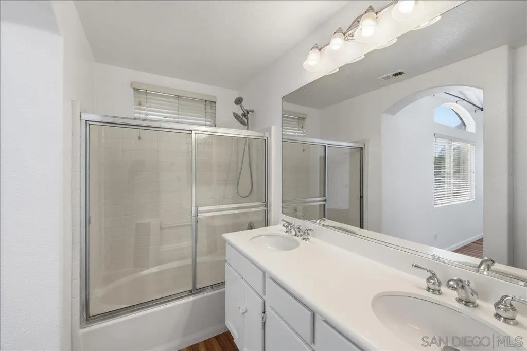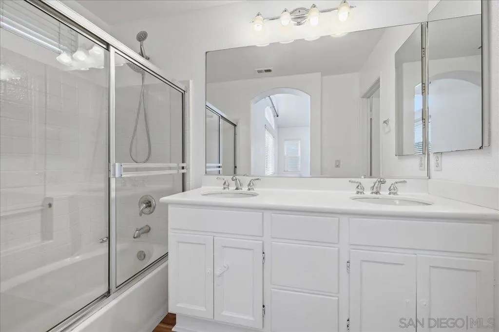 Beautifully Renovated Turnkey Home in Scripps Ranch Move-in ready home in highly desirable Scripps Ranch with convenient access to I-15, shopping, dining, and everyday essentials. This newly renovated residence features new flooring, fresh interior paint, and recessed lighting, creating a bright and modern living space. Upgrades include a 240V EV charging outlet, whole-home water softener, full HVAC system, and in-unit washer and dryer. The layout offers two spacious primary-style bedrooms, each with its own en-suite bathroom—ideal for flexible living arrangements. Enjoy a private patio with peaceful views, perfect for relaxing or entertaining. Located within a highly regarded school area, including Dingeman Elementary School, Marshall Middle School, and Scripps Ranch High School, all known for strong academic programs and community reputation. (Buyer to verify school assignments and availability.) Community amenities include pool, spa, BBQ areas, and a children’s play area/park, all within a well-maintained, family-friendly setting. HOA covers landscaping and insurance, providing a low-maintenance lifestyle. Don’t miss this opportunity to own a fully upgraded home in a prime location!