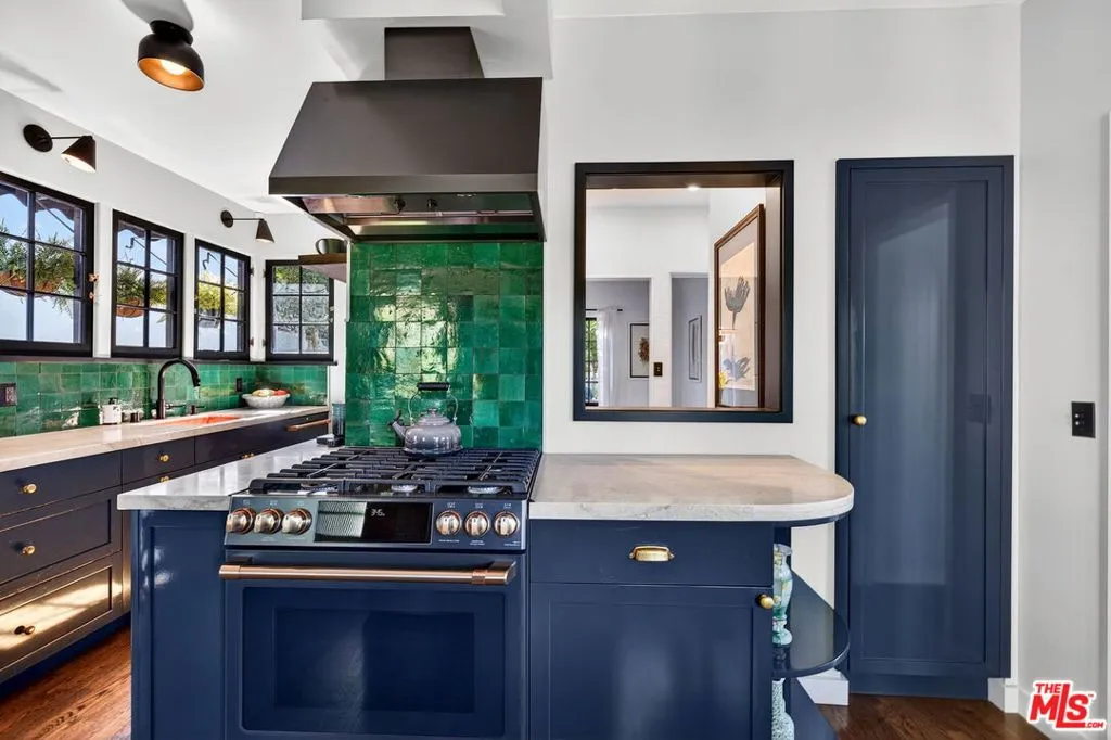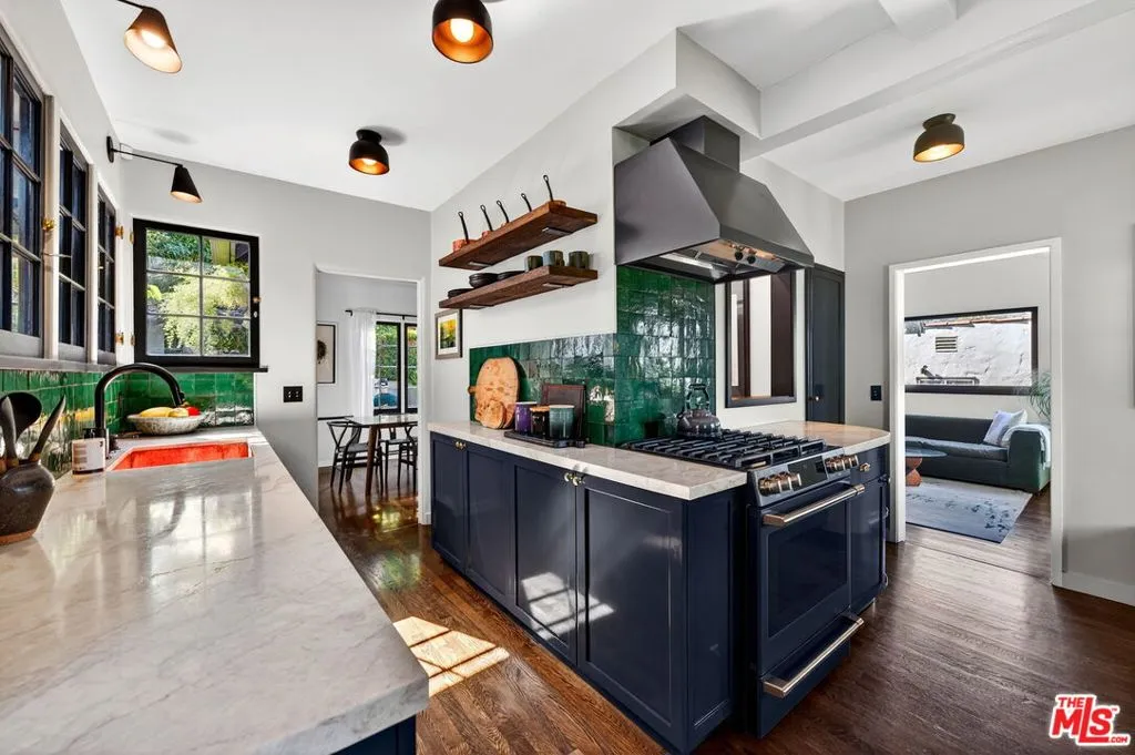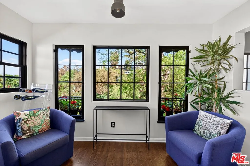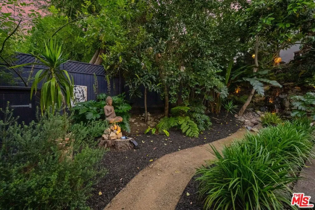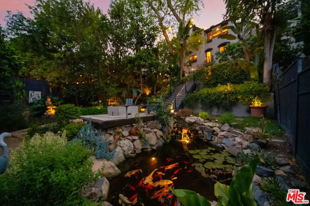 Perched in the hills of Silver Lake, this enchanting storybook residence, designed by noted architect Milton R. Sutton (designer of the Aberdeen House) blends timeless architectural charm with thoughtful modern upgrades. This Zen-inspired retreat offers 3 bedrooms and 2 1/2 bathrooms, with a flexible and serene living experience. Rich oak hardwood floors flow throughout, while the main living areas are bathed in natural light and framed by picturesque tree-top and distant mountain views. A decorative fireplace anchors the living space, adding warmth and character. The home has been fully gut-renovated, featuring a stunning designer kitchen with natural quartzite countertops, Cafe GE appliances, and a handcrafted Zellige tile backsplash. Beautifully remodeled bathrooms and a stylish powder room showcase custom finishes, while a California Closets-designed walk-in dressing room complete with WiFi-enabled washer and dryer adds both luxury and functionality. Step outside into a truly magical, park-like backyard oasis. Designed for both relaxation and entertaining, the grounds feature a tranquil water stream, koi pond, mature fruit trees (orange, avocado, lemon), and multiple seating areas throughout. Trex decking, a built-in gas BBQ with fridge, firepit, and Jacuzzi create the ultimate indoor-outdoor lifestyle, while a private outdoor shower enhances the resort-like feel. The enclosed front courtyard offers additional space for quiet moments or hosting guests. Additional highlights include a attached 1-car garage with Level 2 EV charger, off-street parking for two cars, copper plumbing, PVC sewer line, attic insulation, and a newer heat pump system (under warranty), along with central air and heat delivering comfort and efficiency throughout. Ideally located with direct access to the Red Car Trail and surrounding green space, and just moments from the Silver Lake Reservoir, local cafes, restaurants, and the LA River bike path, this turnkey home offers the perfect balance of nature, design, and city living. Buyer to do their own due diligence to verify property square footage and condition.