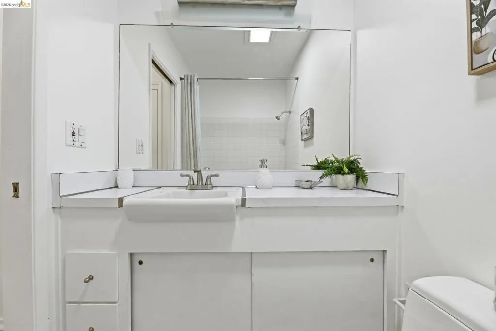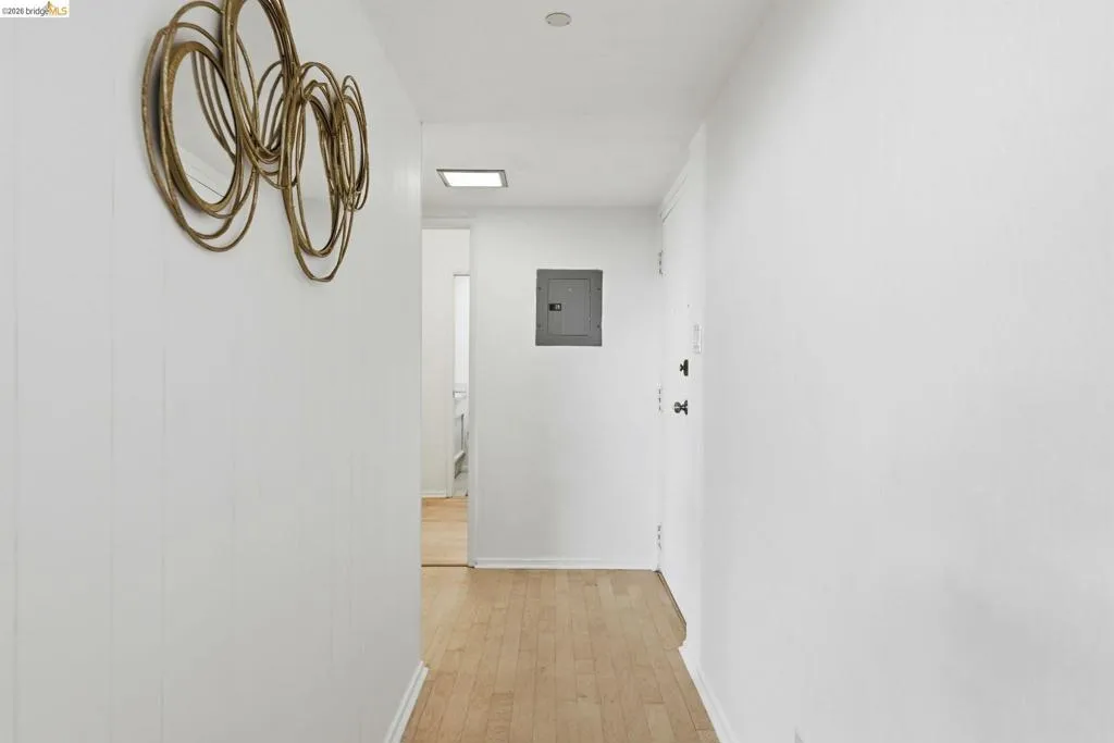 Come see this light-filled top-floor condo in prime North Berkeley with views of the Bay & Golden Gate Bridge. Tall ceilings and expansive windows create an airy feel throughout. The kitchen opens to the living and dining areas, leading to a private balcony perfect for enjoying sunsets. Spacious bedroom plus flexible bonus space ideal for a second bedroom, office, or guest area. Elevator building with secure parking and beautifully maintained common areas. Ideally located near University of California, Berkeley, shops, cafes, and transportation.