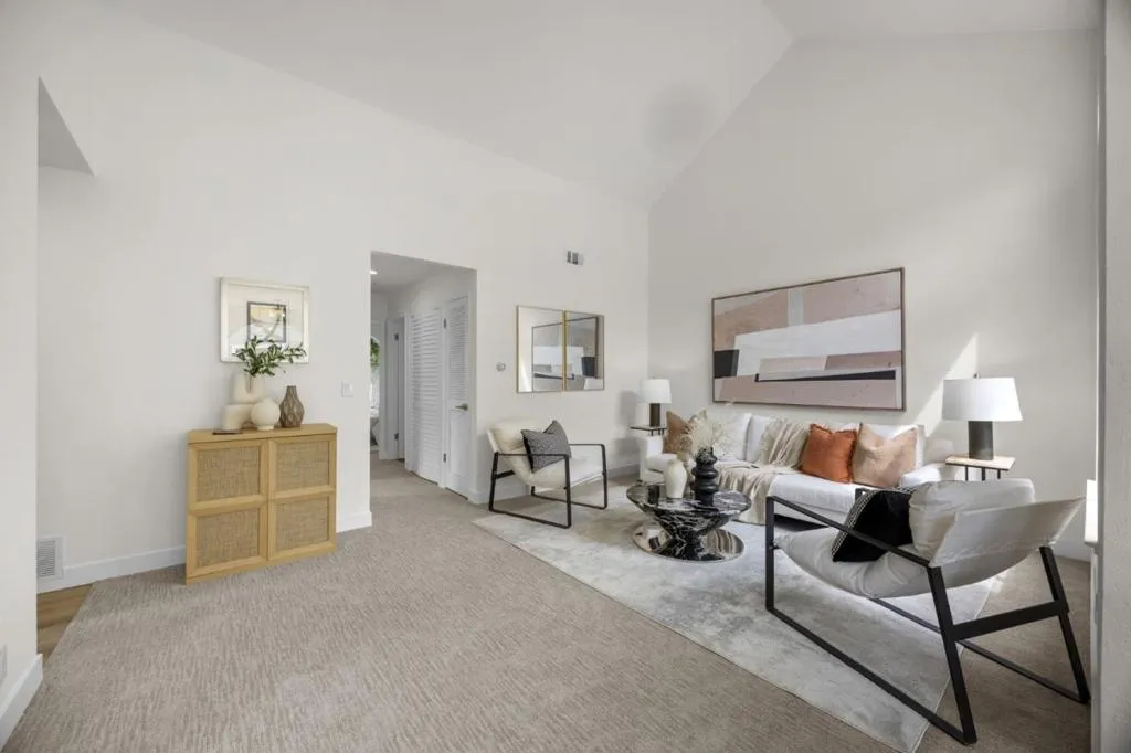 Stylish Corner Unit in Redwood Shores with Phenomenal Lighting Beautifully remodeled second-floor corner unit in the sought-after Redwood Shores neighborhood of Redwood City. High-end finishes include a bright and airy kitchen with windows, quartz countertops, new stainless steel appliances and cabinetry, plus designer flooring and recessed lighting. Updated light fixtures and a brand-new in-unit washer/dryer. Remodeled bathroom with stylish shower tiles, a new shower door, vanity, and new flooring. Vaulted ceilings in the living room and bedrooms create a bright, open feel, with the bedrooms overlooking scenic walking trails and cycling paths. No neighbors behind you. A sliding glass door from the dining area opens to a private patio. Includes one designated parking space #849, detached garage, and ample guest parking. Community amenities include a pool and spa. HOA dues are $591.00 a month, which includes water/garbage. Conveniently close to schools, shopping, parks, Oracle, and other major tech companies, Highway 101, Caltrain, and San Francisco International Airport. An exceptional opportunity, your most discerning clients will not be disappointed
