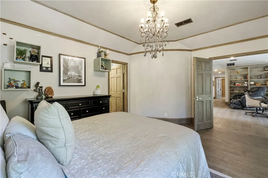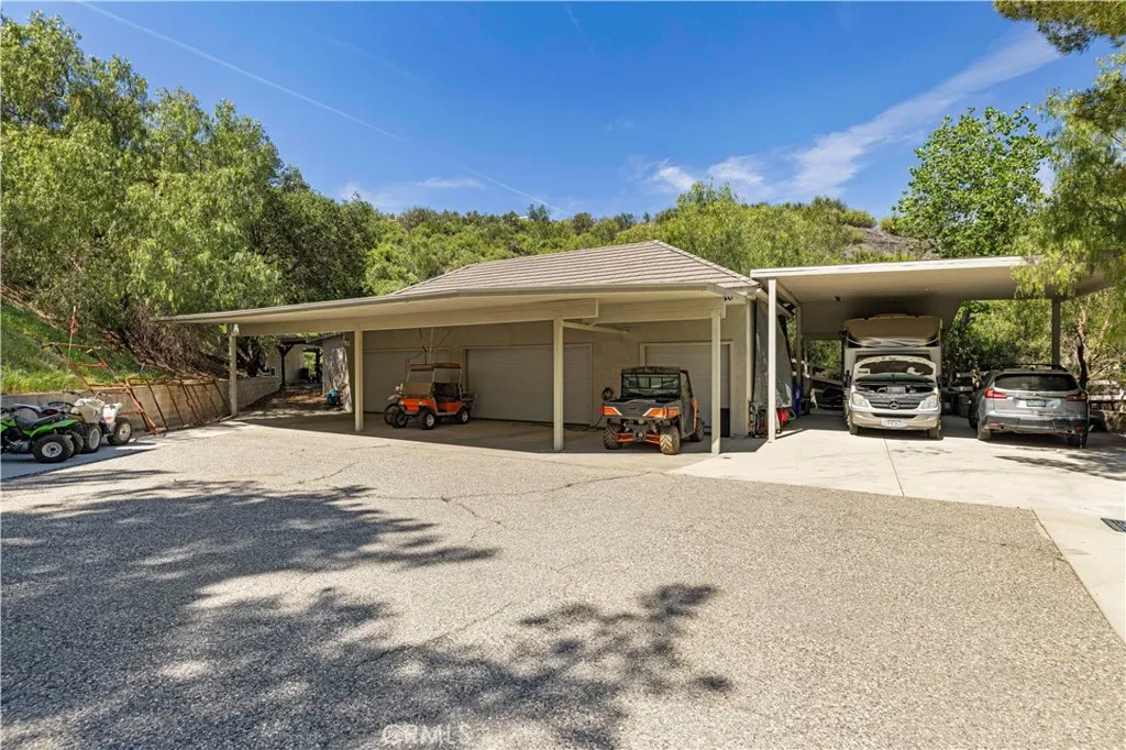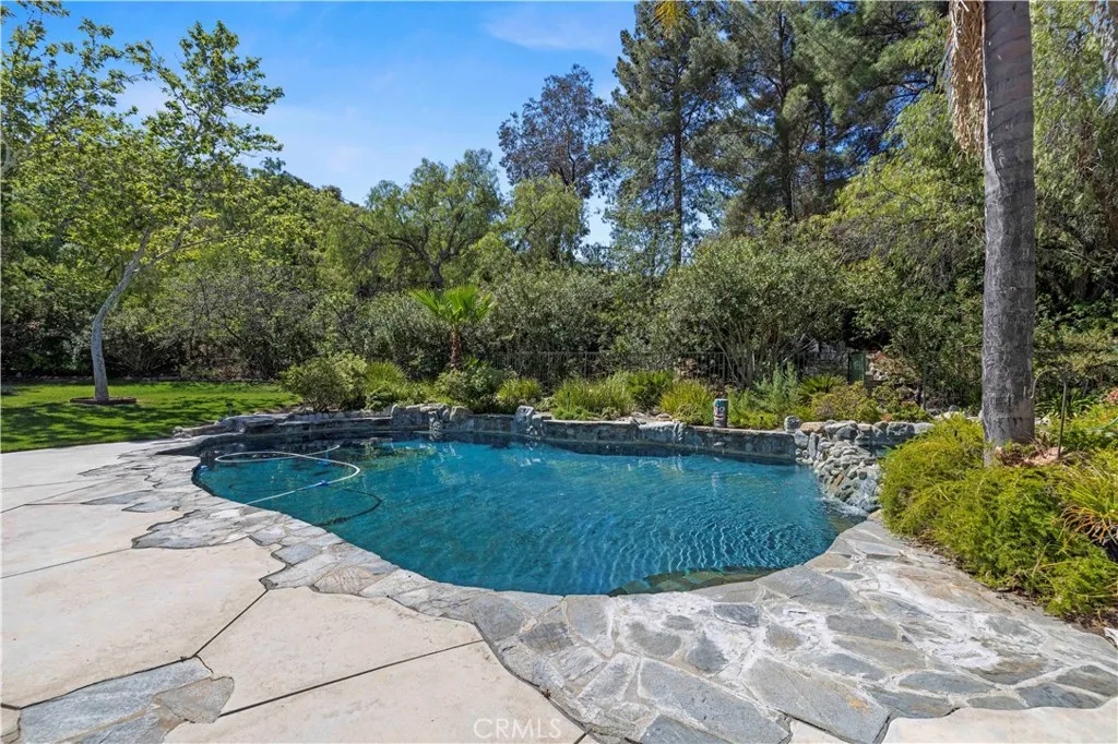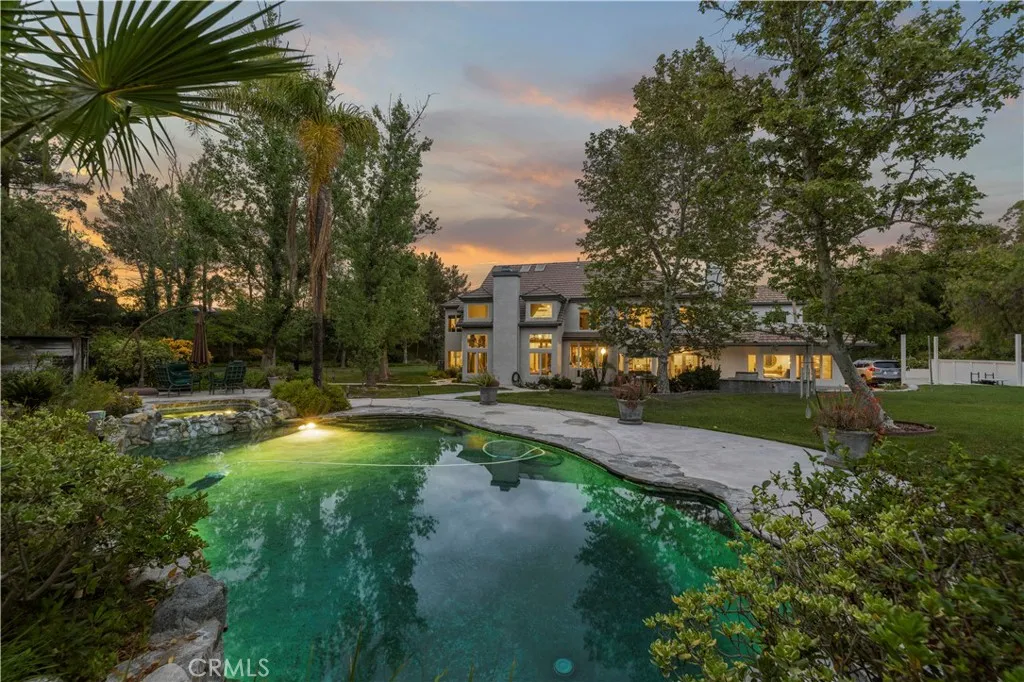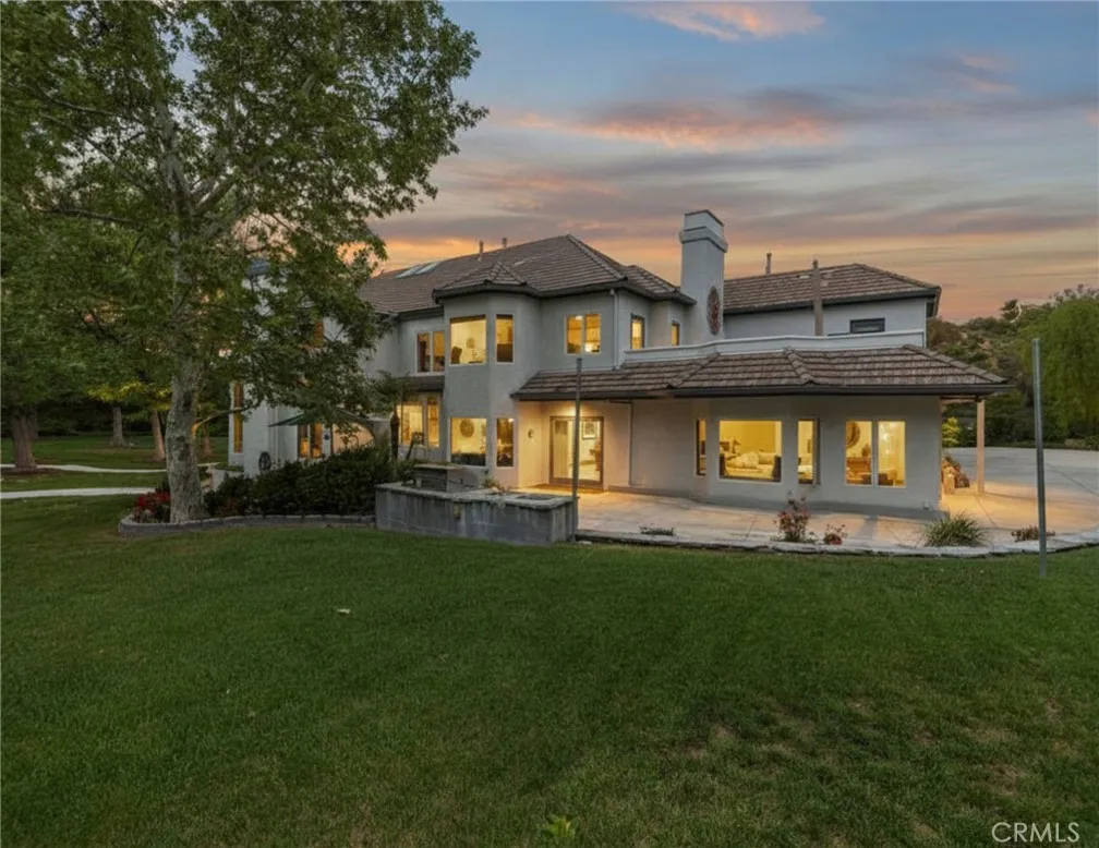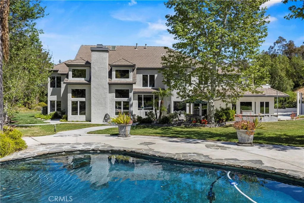 Welcome to your dream home in the prestigious Sand Canyon neighborhood! This California contemporary estate offers 5,134 sq ft of living space on a nearly 9-acre private and fully fenced property with serene mountain views. The gated drive leads to a grand circular driveway featuring a centerpiece fountain. A gorgeous custom metal front door opens into a sun-drenched great room with soaring ceilings, oversized windows, double doors leading outside, and a stunning custom statement fireplace, perfect for gathering or effortless entertaining. The formal dining room flows seamlessly from the main living space. The main level includes two well-appointed ensuite bedrooms with custom built-ins. The chef’s kitchen is a true showpiece with a soapstone island, natural stone countertops, and custom cabinetry all opening seamlessly to the breakfast nook and family room. Enjoy the 6 burner Dacor range, double ovens, dual refrigerator/freezer, steamer and generous pantry storage. The expansive family room features exposed beams, a custom feature wall, an architectural fireplace with extended hearth, and a bay window seat. Upstairs, an airy loft overlooks the great room. The primary suite is a private sanctuary with a fireplace, balcony views, and a sun patio with above-ground spa. A generous walk-in closet leads to a flexible bonus room. The ensuite bath offers dual vanities, a separate soaking tub, steam shower with rainfall feature and towel warmer, plus a laundry chute for added convenience. There are three additional bedrooms on the second floor, including one en-suite. Outside, enjoy a sprawling lawn, resort-style pool and waterfall spa, built-in BBQ, and a sport court lined for basketball and pickleball. A detached workshop/5-car garage, RV electrical hookup, and generator system (with potential backup to the main house) complete this exceptional property. Whether you’re dreaming of unforgettable gatherings, space for hobbies and toys, or a true retreat surrounded by nature, this property delivers a rare lifestyle in an exclusive neighborhood!
