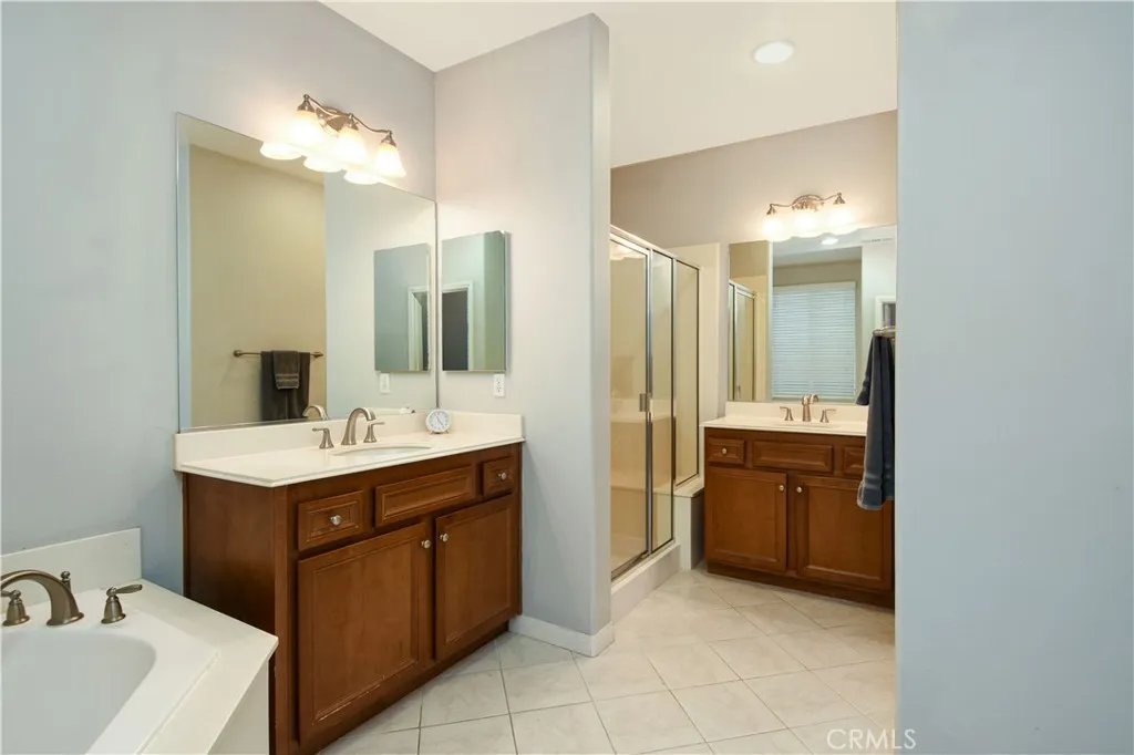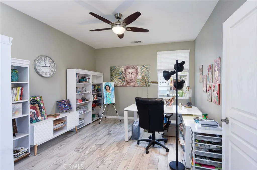 Four Seasons is a Premier 55+ master planned community with unparalleled activities and amenities. Contemporary, light and welcoming epitomize the feeling of this spacious two bedroom two bath home with 2021 sq. ft. and two car garage. The versatile floor plan offers a third room to suit your lifestyle, whether you need an office, art studio or guest room. Nestled on a quiet cul-de-sac, double door entry w/ custom security screen doors, primary en suite offers 2 walk in closets, high ceilings, light wood look tile floors, updated lighting and ceiling fans, floor to ceiling stack stone faced F/P, granite kitchen, all appliances included, crown molding, covered patio, fully landscaped. Water softener system, updated light fixtures, faux wood blinds. Resort style living, HOA $214.00. gated community with attendant, roving 24 hour security. Come experience fulfilling clubs and fun filled events or just luxuriate at the gorgeous pool. The privately owned golf course of Hemet Golf Club winds gracefully throughout the community adding to the natural beauty of the landscape.
