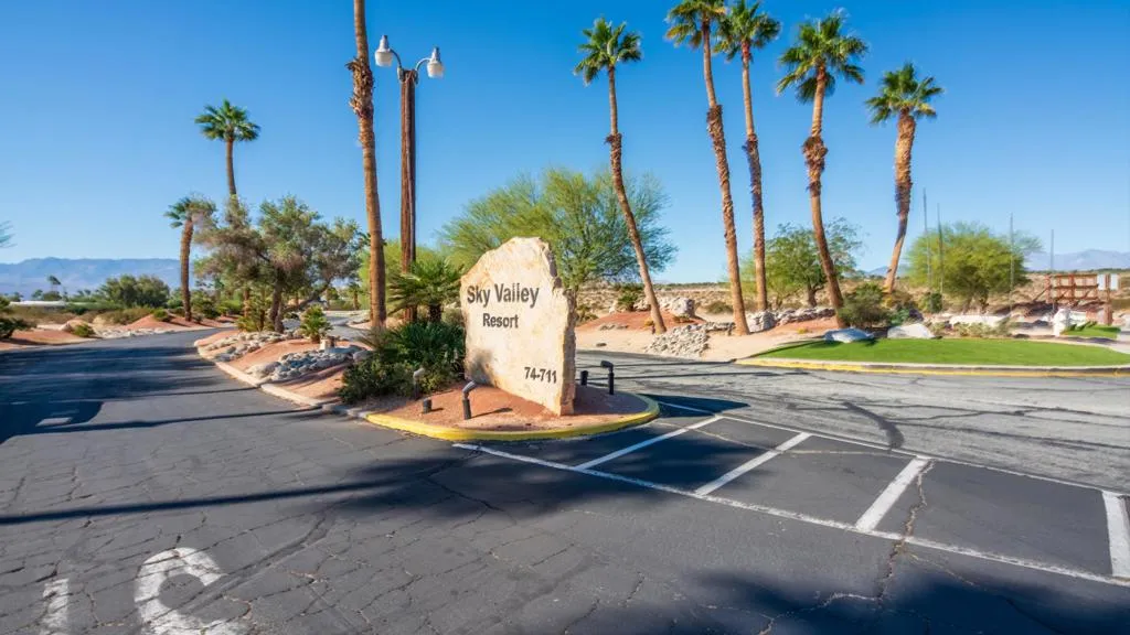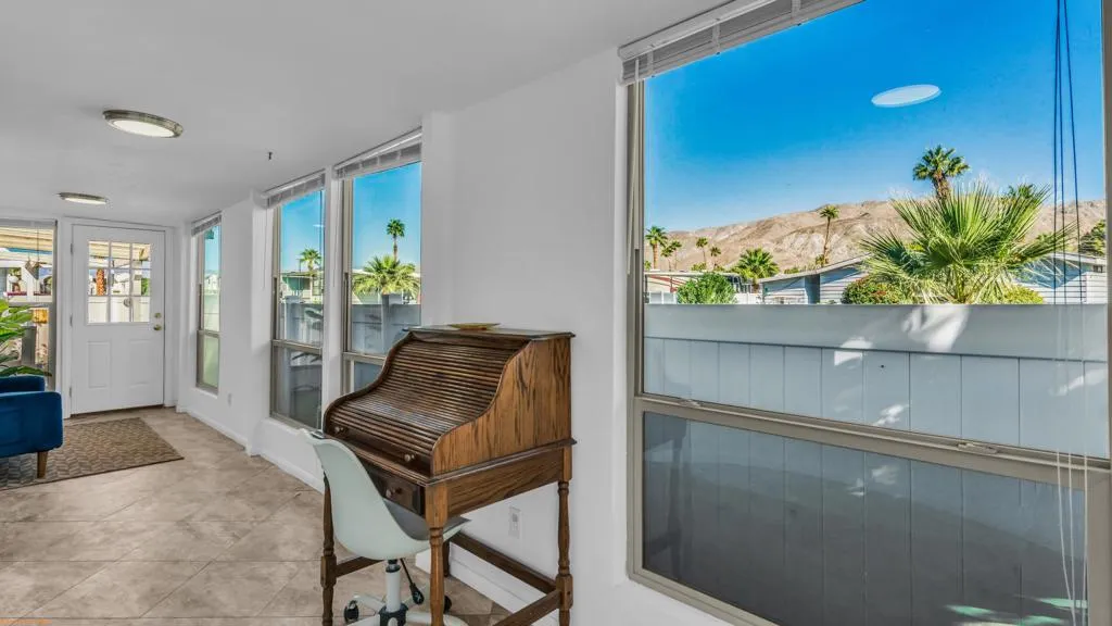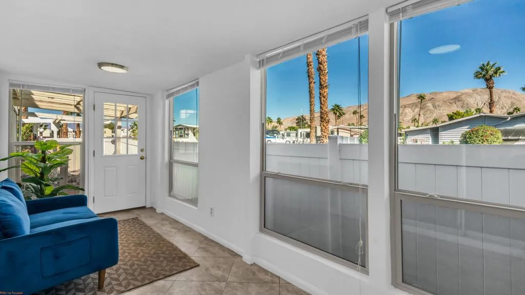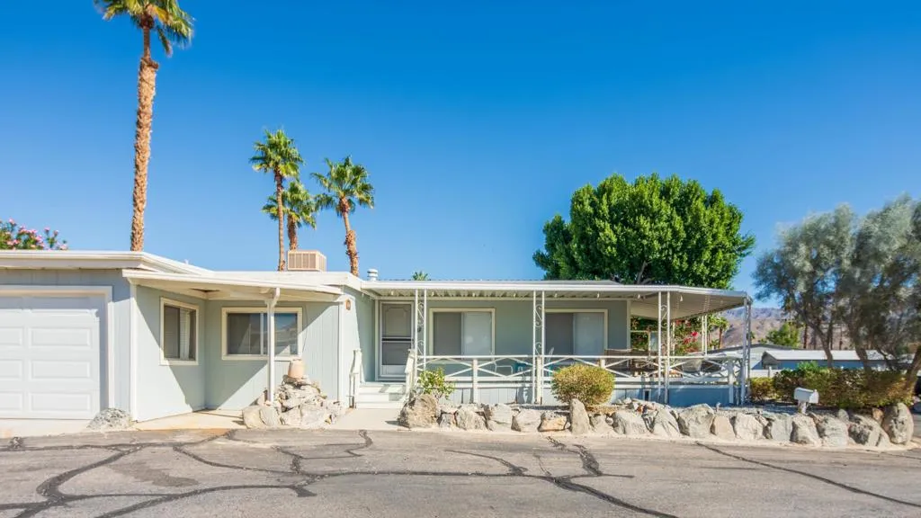 Sky Valley Resort, a gated mineral pool community that is just a 25-minute drive from Palm Springs. Two bedroom and two full bathrooms and covered attached porch. The unbelievable view will make sipping wine while watching the colors from the sunset . The outdoor area and covered porch is ideal for entertaining. This is expected to go fast, so call today to get gate code and chance to see this gem in person. Land is leased and space rent is only $1,203 a month plus utilities, covering maintenance and upkeep of grounds, pools, walking trails, security gate and cameras, fully equipped state-of-the-art gym, lush green grass dog parks annual seeding, community garden, clubhouse, 13 mineral pools and spas, firepit and walking trails, billiards room, sport courtsCall us today for more information.