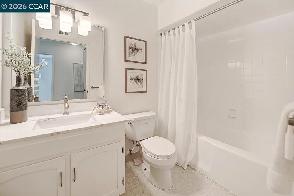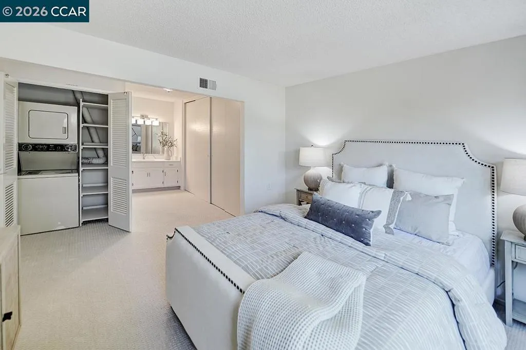 Charming level-in Yosemite model in the heart of Rossmoor’s vibrant 55+ community. This 2-bedroom, 1.5-bath home offers a private setting with a wall of windows showcasing serene golf course views and abundant natural light. The open floor plan flows to an inviting east-facing patio—perfect for morning coffee or evening relaxation. The updated kitchen features freshly painted white cabinetry and all-new appliances. The refreshed hallway bath includes quartz countertops, new fixtures, and a shower-over-tub, while the primary suite offers an updated half bath with a spacious vanity and quartz surfaces and a stacked washer dryer for your convenience. Enjoy fresh two-tone paint, new carpet, and vinyl flooring throughout, plus a park-like setting with walking paths and access to Rossmoor’s exceptional amenities including golf, clubhouse, fitness center, pools, and more.