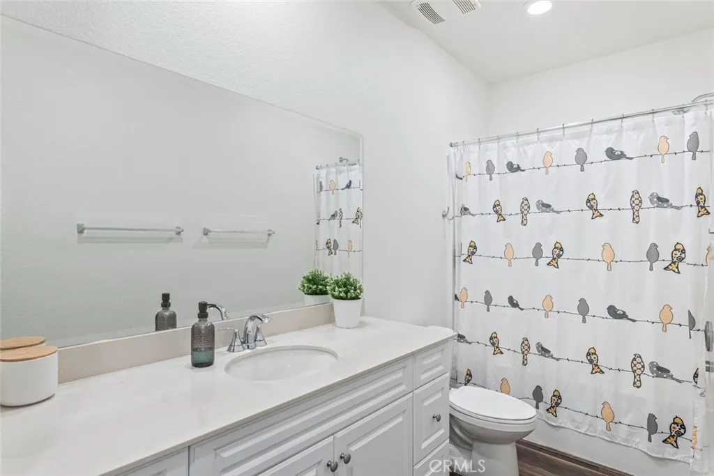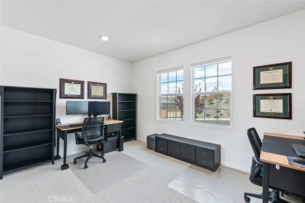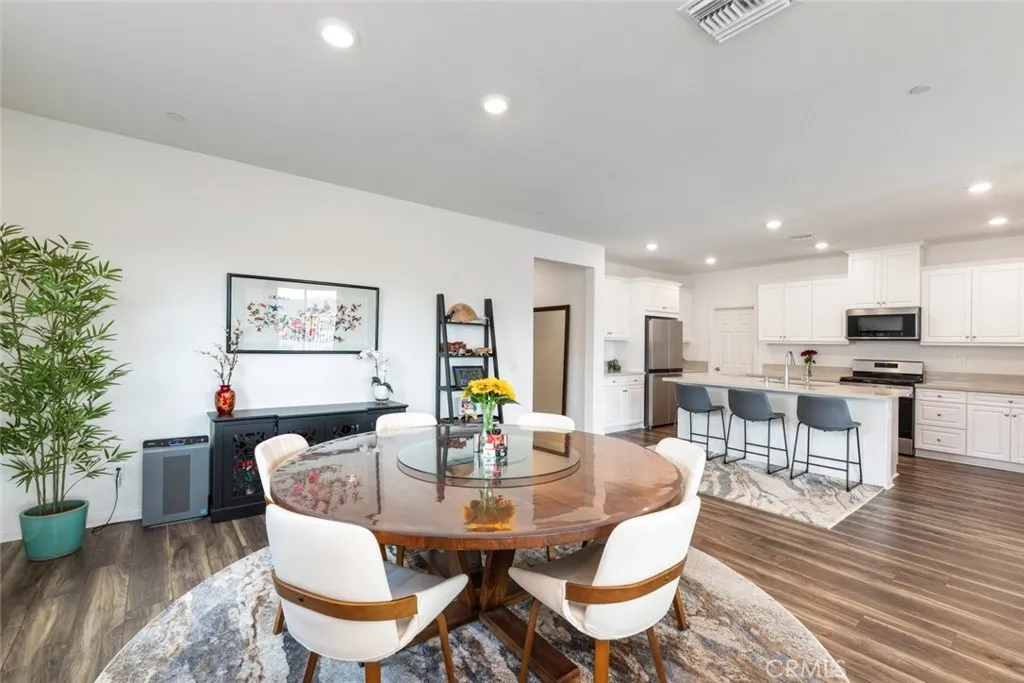 Beautiful Rosetta Canyon single-story home featuring 4 bedrooms, 2 bathrooms, PAID OFF SOLAR, and a premium view lot with stunning panoramic views and 9-foot ceilings throughout! This thoughtfully designed home offers an ideal blend of comfort, functionality, and privacy with a unique split-bedroom floor plan. As you enter, you are welcomed by a formal entry and luxury LVP flooring that flows seamlessly through the main living areas, creating a clean and modern feel. The spacious kitchen is perfectly positioned at the heart of the home and opens to both the dining area and family room, creating a desirable great room layout ideal for everyday living and entertaining. Features include Corian countertops with seamless integrated sinks, stainless steel appliances, a walk-in pantry, dedicated coffee bar area, and ample cabinetry for storage. The adjoining family room offers a light and bright atmosphere with plenty of windows to capture the surrounding views and natural light. The primary suite is privately located on its own wing of the home, offering a peaceful retreat with generous space, a large walk-in closet, dual sinks with a dedicated vanity area, and a walk-in shower. On the opposite side of the home, three additional bedrooms are all generously sized and share a well-appointed hallway bathroom with a shower/tub combo and additional storage. Additional highlights include a large indoor laundry room with extra storage space, a finished 2-car garage equipped with a tankless water heater and EV charging capability, and energy-efficient solar that is fully paid off. The front yard is designed for low maintenance, while the backyard offers a blank canvas ready for your personal touch—perfect for creating an outdoor living space, garden, or entertaining area that takes full advantage of the incredible views and peaceful surroundings. Conveniently located near shopping, dining, schools, Lake Elsinore recreation, and easy access to the 15 freeway, this home offers both comfort and convenience in one of the area’s most desirable communities. Don’t miss this opportunity to own a move-in ready home with views, efficiency, and an ideal layout!