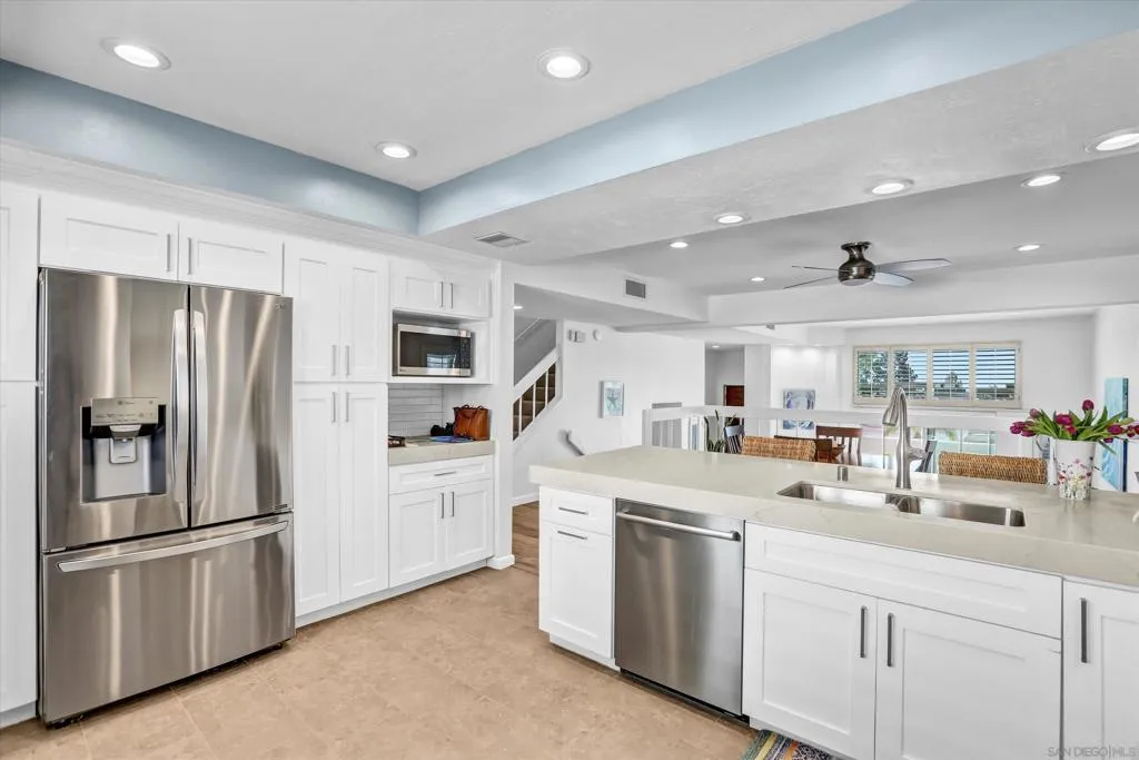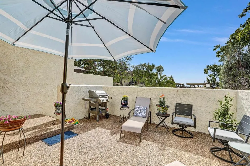 Come see this beautiful town home at the lovely Vista Del Cerro complex! This end unit has been tastefully updated and is just gorgeous! Enjoy the sunsets, views and breezes coming through the many windows of this bright unit. Enjoy the Sea World fireworks during the summer too! This town home really lives like a single family house since there is no one in front of you and it's an end unit! The patio is likely one of the largest you will find in a town home. The seller has extensively remodeled this unit over the past several years with newer electrical panel, including outlets and GFIs as well as updated plumbing.The kitchen is quite roomy with a breakfast bar, all new cabinets with pull out shelves and quartz counter tops. Recessed lighting and plantation shutters throughout as well as new sliding glass doors and a new hot water heater. The bathrooms have all been remodeled as well. THe flooring is engineered hardwood and there are ceiling fans throughout! Also, this unit features 2 primary suites!!! This home is truly MOVE IN READY. The HOA includes a pool, spa and clubhouse.