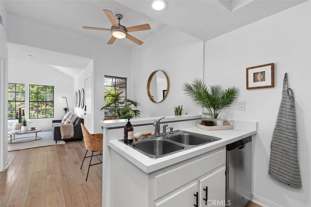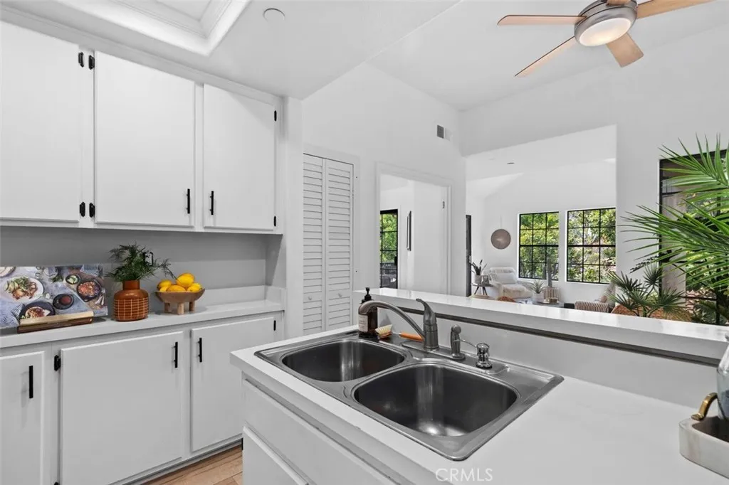 Tucked within one of the most serene and sought-after enclaves of Vista Pacifica, this beautifully re-piped condo offers effortless coastal living in a prime upstairs corner location. This unique one-bedroom plus finished attic/loft lives larger than expected, with soaring ceilings and an abundance of windows that fill the home with soft natural light, creating an airy, uplifting ambiance from the moment you arrive. Freshly painted, the living space blends comfort and style with a charming shiplap accent wall and seamless flow into the dining area, complete with a modern ceiling fan. The kitchen is both functional and inviting featuring recessed lighting, stainless steel appliances, a gas range and clean finishes that elevate everyday living. Through double doors, the spacious primary suite feels like a private retreat, with impressive ceiling height and multiple windows enhancing the open feel. The en-suite full bathroom offers comfort and convenience, while the oversized walk-in closet is thoughtfully designed with custom organizers and its own window for even more natural light. And then a surprise element that truly sets this home apart… A finished attic/loft above expands your living space—complete with wood flooring, recessed lighting and a built-in desk. Whether used as a home office, guest retreat, cozy lounge or additional storage, it’s a flexible bonus space ready to evolve with your lifestyle. Step outside onto your private patio from either the living room or primary suite and enjoy the gentle ocean breeze drifting through the trees. The peaceful setting, surrounded by lush landscaping and the soft sound of nearby waterfalls, offers a daily sense of escape—just moments from one of the community’s two resort-style pools and spas. Additional highlights include an in-unit stackable washer and dryer, a nearby one-car garage, ample guest parking, RV parking (subject to availability), and no Mello-Roos tax. Located in the heart of San Clemente, you’re close to sun-drenched beaches, world-class surf, scenic trails, parks, tennis, pickleball, golf, shopping and the iconic pier and beach trail. More than a home, this is a place where mornings feel brighter, evenings feel calmer and every day carries a hint of vacation. Welcome Home!