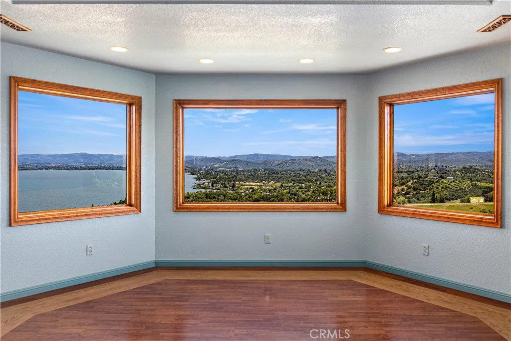 Consider this Awesome 4,132 sf 6 acre, Spectacular Clear Lake Views Home, on a paved ridge road, with privacy at end of Lake Vista Drive. Wildlife lover & fisherman's delight to boat launch minutes nearby. Extraordinary large parking, turn around & recreational vehicle areas. Three bedrooms plus nursery room & office offer additional sleeping options. Three full bathrooms on Main Level & half bath off downstairs 838 sf mural clad Flexible Use Party Room with 16 foot ‘L’ shape wet bar. Convenient single car garage at main house leads into Laundry, Butler's Pantry and exceptional storage. Spacious detached three car garage has additional half bath. Primary Suite in West wing, approx. 25' x 16' flows into lavatory, double sinks with granite counters, wrap around glass shower & walk-in closet. Suite also features, wet bar, microwave, refrigerator, built-in handcrafted dressers plus romantic deck seating access. East wing has second large suite with Jack & Jill bathroom to third adjacent bedroom. Sculpted ceilings in Dining room & both Suites. Central Vacuum both levels. Open-concept design Kitchen with Breakfast Nook & Family Room with cozy gas fireplace filled with natural light, entice you to step out onto covered deck to relax. Numerous guests comment this home could easily be a VRBO with owners living on premise or not. Sutter Hospital at hand five minutes nearby.