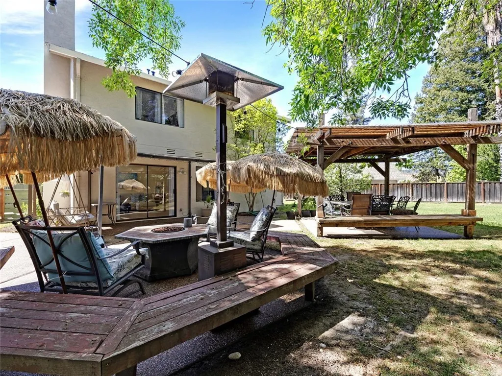 Located in the highly sought-after Ponderosa neighborhood of Pleasanton, this beautifully updated home sits at the end of a quiet cul-de-sac on an expansive ~¼-acre lot, surrounded by mature redwood trees that create a rare, private, park-like setting. A light-filled interior unfolds into an open-concept design with new flooring throughout, a cozy fireplace anchoring the living space, and a dedicated media room—offering both comfort and versatility for modern living. Outdoors, the property transforms into an entertainer’s retreat, featuring a cabana, firepit lounge area, and expansive grounds with room to host, play, or expand. The oversized lot also presents excellent potential for an ADU, adding long-term flexibility and value. Positioned next to a community pool and surrounded by some of Pleasanton’s top parks, trails, and outdoor recreation, the home offers a lifestyle centered around convenience, connection, and outdoor living—without the burden of HOA fees. Located within the highly rated Pleasanton Unified School District and just minutes to downtown Pleasanton’s shopping and dining, this is a rare opportunity to own a private, spacious property in one of Pleasanton’s most desirable communities—where comfort, convenience, and lifestyle come together effortlessly.