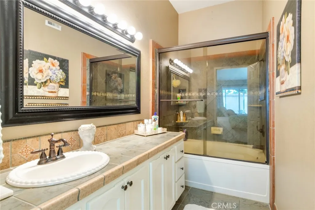 Turnkey.... Welcome to this charming well maintained condominium offering comfort, style, and modern upgrades. This single level home features engineered hardwood flooring in the family room and kitchen. Upgraded tile flooring in the hallway, and carpet in the bedrooms. High ceilings in both family room and primary bedroom enjoying the spacious feeling that it creates. Included is a fireplace perfect for relaxing evenings. Nice quartz kitchen countertops. Additional highlights include plantation shutters on all windows, double-pane windows for energy efficiency, and newer A/C air duct system for improved quality airflow. 2 attached car garage with direct entry inside the home and laundry, along with private backyard. Located across the community pool and clubhouse. Great location with easy access to freeways, close to shopping, restaurants, and entertainment. Amazing community that everyone would love to call a wonderful home. Must see!!