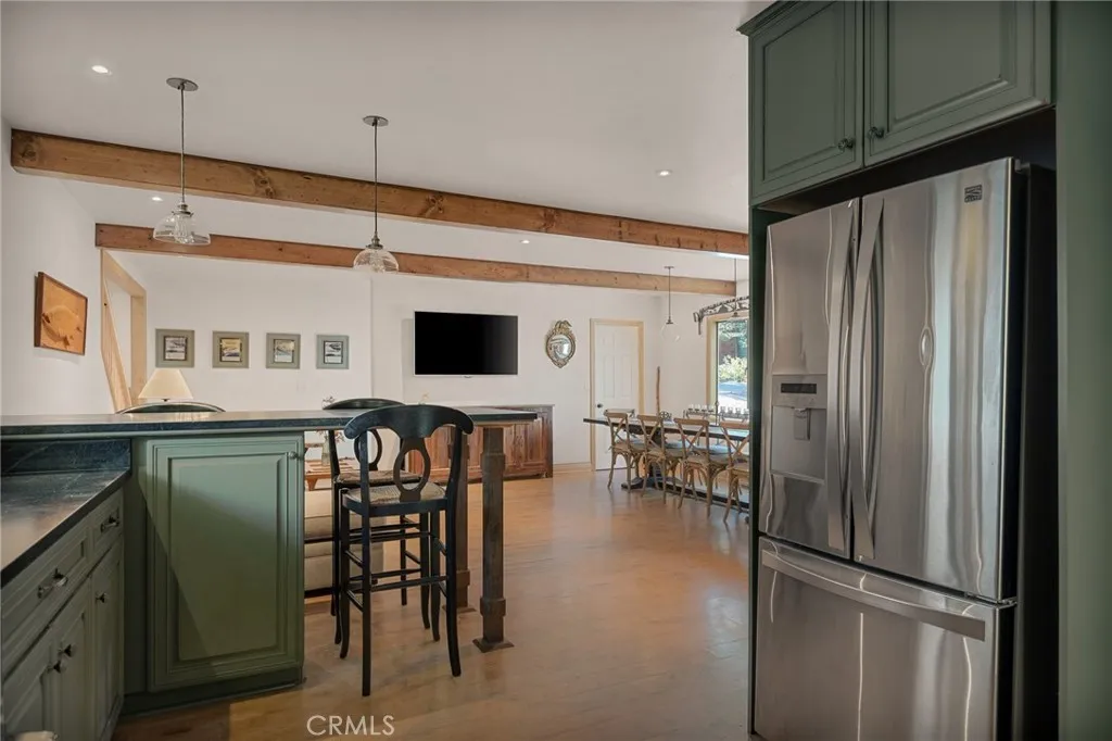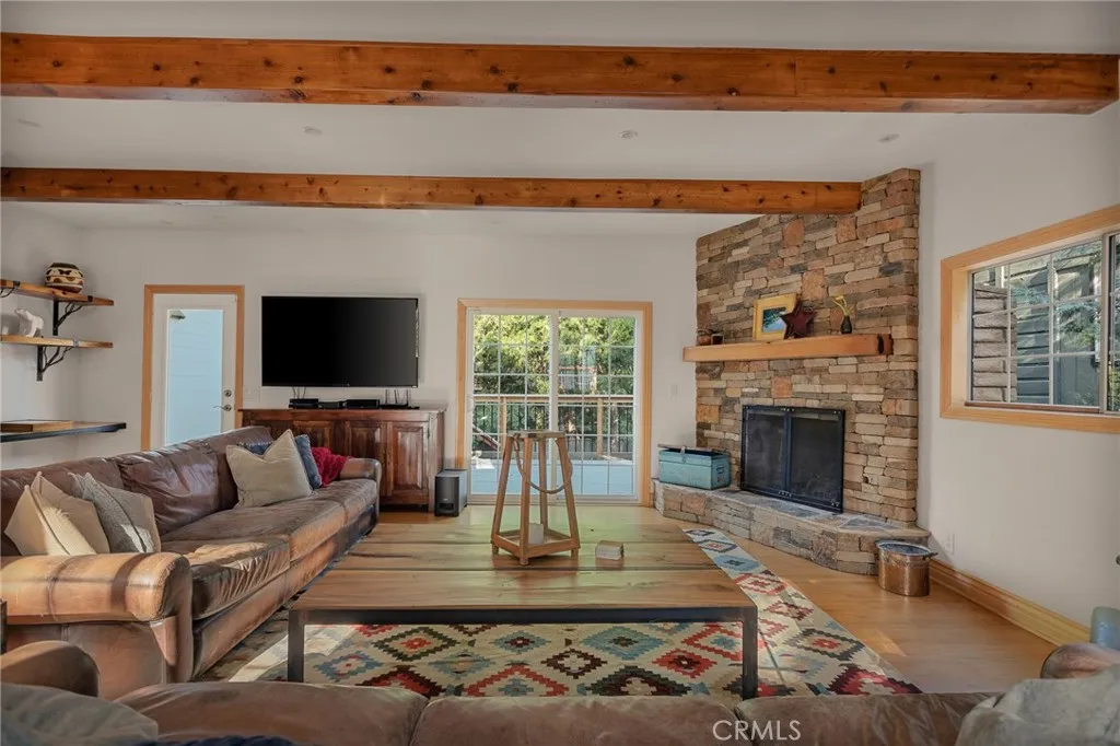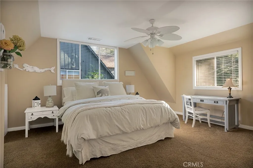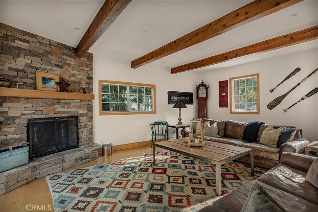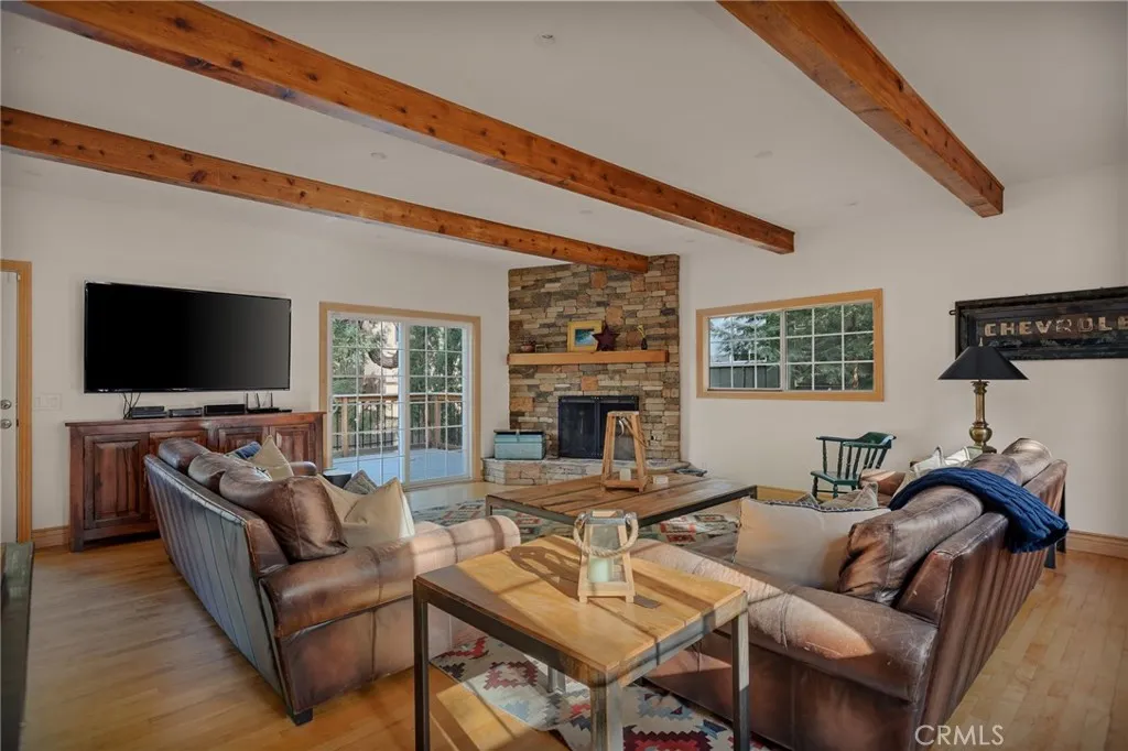 Pride of ownership in the Palisades on a near level lot. Arrive to your home located in the coveted Palisades with 3 parking spots, and about as level as it can get in the mountains. This property has a large fenced back yard, newer composite deck and back up whole house Generac generator. The main floor has both a living room and family room, an updated kitchen with soapstone counter tops, porcelain farm house sink, stainless steel viking appliances, bar-top counter seating and a door to the back deck which also takes you to the laundry room. There is also a large dining area, and 3/4 bathroom. The main living room boast lots of windows to allow the natural light to flood in, stone fireplace, and sliders that take you outside. Upstairs is the 4 large bedrooms, and 2 baths, and a sitting area with balcony. The homes exterior was just freshly painted, and a new water heater was installed in 2026. You are minutes from the lake, lake trails and beaches, and even close to the Cedar Glen shops and restaurants. Home comes mostly furnished and is located within the lake rights territory. This is a must see to appreciate.