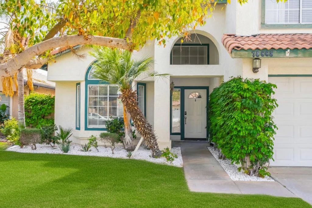 Charming south facing home in the heart of North La Quinta. 4 bedroom 2.5 bath 3 car garage with no HOA! Great bones, solid layout and tons of upside possibilities. This two-story home sits on a large level lot with private pool and spa covered patio. Ideal for full-time living or vacation rental (30 day minimum). All bedrooms are upstairs with a split staircase and open overview of great room. Open floor plan features kitchen overlooking the bonus room and the pool so you can keep an eye on the Fun while you prep for meals. Wet bar with extra storage. The garage has direct access to home. The third garage has separate entrance ( perfect for ADU conversion extra income potential) Also features workshop and storage great for hobbies. The swamp cooler keeps garage cool usable all year round. Kitchen has granite countertops, stainless steel appliances and newer cabinets. Ceiling fans in every room, wired for high speed internet, and pre wired alarm system. Close to the famous INDIAN WELLS TENNIS Gardens! In the DSUSD school district just minutes from Shopping, Restaurants, and Dog Park nearby. Home needs some cosmetic updates. Bring your vision and make it your own. Turnkey, furnished, and ready for you to add your touch!