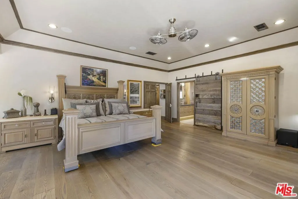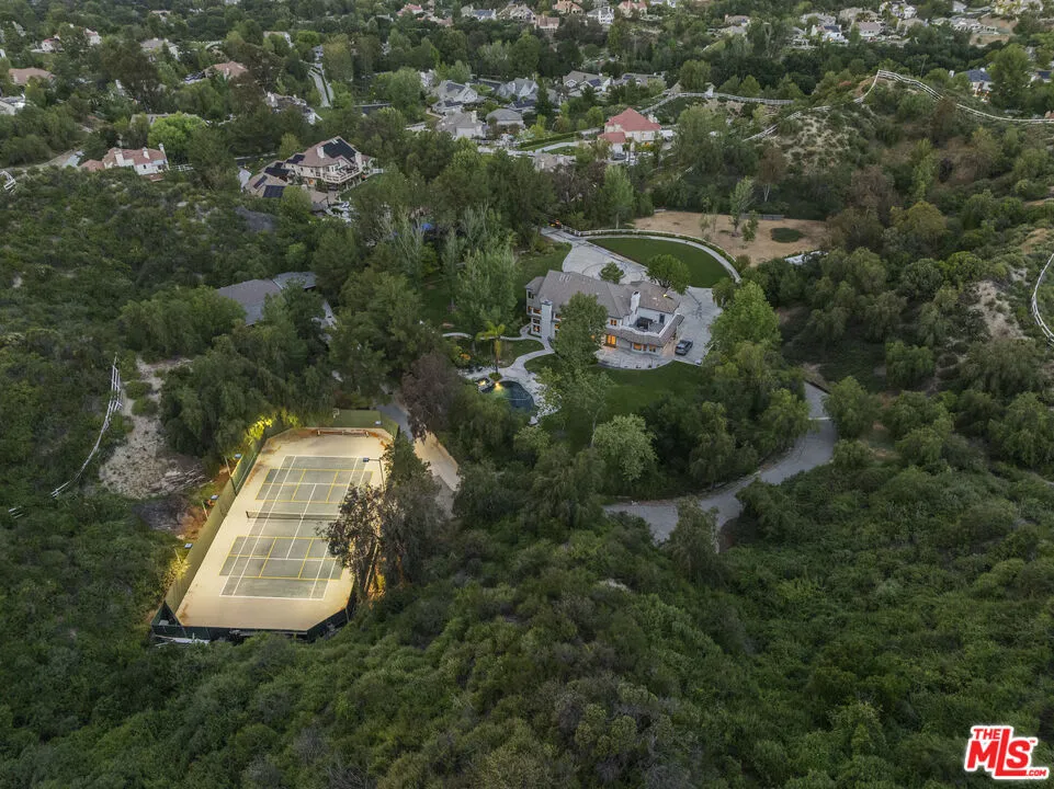 Welcome to your dream home in the prestigious Sand Canyon neighborhood! This California contemporary estate offers 5,134 sq ft of living space on a nearly 9-acre private and fully fenced property with serene mountain views. The gated drive leads to a grand circular driveway featuring a centerpiece fountain. A gorgeous custom metal front door opens into a sun-drenched great room with soaring ceilings, oversized windows, double doors leading outside, and a stunning custom statement fireplace, perfect for gathering or effortless entertaining. The formal dining room flows seamlessly from the main living space. The main level includes two well-appointed ensuite bedrooms with custom built-ins. The chef's kitchen is a true showpiece with a soapstone island, natural stone countertops, and custom cabinetry all opening seamlessly to the breakfast nook and family room. Enjoy the 6 burner Dacor range, double ovens, dual refrigerator/freezer, steamer and generous pantry storage. The expansive family room features exposed beams, a custom feature wall, an architectural fireplace with extended hearth, and a baywindow seat. Upstairs, an airy loft overlooks the great room. The primary suite is a private sanctuary with a fireplace, balcony views, and a sun patio with above-ground spa. A generous walk-in closet leads to a flexible bonus room. The ensuite bath offers dual vanities, a separate soaking tub, steam shower with rainfall feature and towel warmer, plus a laundry chute for added convenience. There are three additional bedrooms on the second floor, including one en-suite. Outside,enjoy a sprawling lawn, resort-style pool and waterfall spa, built-in BBQ, and a sport court lined for basketball and pickleball. A detached workshop/5-car garage, RV parking/electrical hookup, and generator system (with potential backup to the main house) complete this exceptional property. Whether you're dreaming of unforgettable gatherings, space for hobbies and toys, or a true retreat surrounded by nature, this property delivers a rare lifestyle in an exclusive neighborhood!