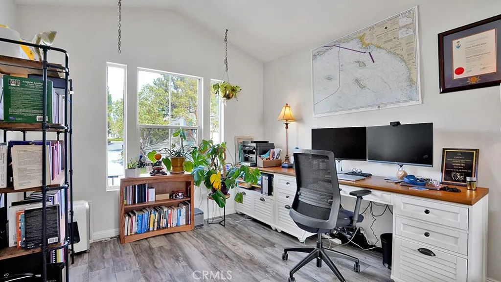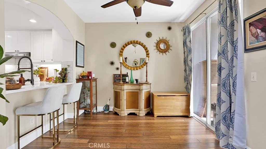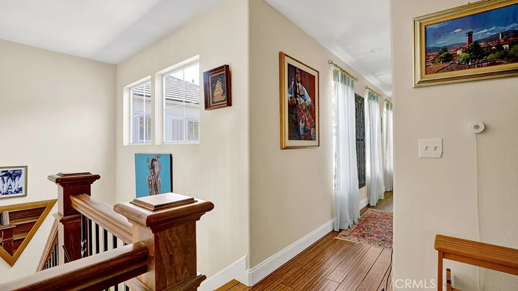 This renovated 3-bedroom, 2.5-bath townhome is nestled in the La Mirage community - just across from Soka University and steps from the trails of Aliso & Wood Canyons Wilderness Park. Inside, the open-concept main level makes an immediate impression — wide-plank hardwood floors flow throughout, anchored by a custom wrought iron staircase. The kitchen has been thoughtfully reimagined with a with a generous farmhouse sink and crisp subway tile backsplash. It opens seamlessly into the dining area and living room, creating a natural gathering space that extends through two sets of sliding doors to a large, private enclosed patio with peaceful mountain views framed by mature trees — an ideal spot for morning coffee or evening unwinding. Upstairs, the primary suite is a proper retreat: vaulted ceilings, dual closets, and a well-appointed en-suite bathroom. Two additional bedrooms and a full bath offer flexibility for family, guests, or a dedicated home office. Outfitted with a full suite of smart home technology including Ecobee Smart Thermostat with temperature sensors throughout the home, Flair Smart Vents, Aqara Smart Video Doorbell, Philips Wiz Multicolor Smart Lights at the entrance and various rooms, and Schlage Smart Lock on the front door. The attached two-car garage with direct interior access adds everyday convenience. It is also EV-ready, featuring a dedicated 240V outlet for Level 2 charging. Ample guest parking makes hosting seamless. La Mirage is a well-maintained community offering a pool, spa, tennis courts, and a clubhouse, with easy access to the 73 Toll Road, Aliso Viejo Town Center, and top-rated Capistrano Unified schools. Hiking and biking trails, beaches, and the energy of coastal Orange County are all within easy reach.