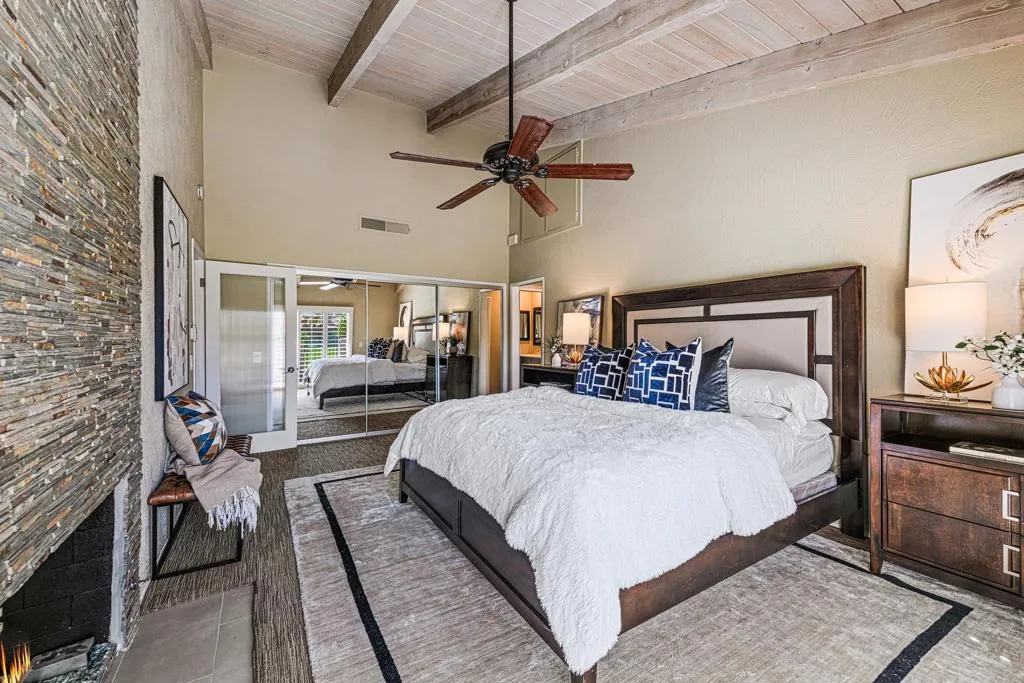 Exceptional Value in Palm Springs' Iconic Deep Well RanchWelcome to a rare opportunity in one of Palm Springs' most sought-after neighborhoods, Deep Well Ranch. Bathed in warm desert light and framed by stunning mountain views, this spacious 3-bedroom, 2-bath residence offers 2,054 sq. ft. of comfortable, character-rich living--at an exceptional value. Designed by renowned architect Barry Berkus, this home showcases authentic Spanish-style elements including 12-inch adobe walls, soaring 14-foot beamed ceilings, clerestory windows, and whitewashed shiplap accents. The open, sun-filled floor plan seamlessly connects the living, dining, and kitchen areas--ideal for relaxed everyday living or entertaining friends and family. Step outside to your private patio, which opens directly onto a lush community greenbelt filled with mature trees, flowering desert plants, and the soothing sounds of songbirds--an ideal setting for morning coffee or evening gatherings.Located in southern Palm Springs, the guard-gated Deep Well Ranch neighborhood has recently completed multi-million-dollar infrastructure improvements, including newly paved streets, enhanced lighting, refreshed landscaping, and a forward-thinking, community-focused HOA. Additional highlights include, two-car garage, generous storage throughout, three community pools and spas. tennis / pickleball court, expansive walking paths 24/7. It's just minutes from Palm Springs favorites such as L'Horizon, Koffi, El Jefe, Mr. Lyons, and Smoketree Plaza. Whether you're seeking a full-time residence, seasonal retreat, or investment opportunity, this home offers remarkable value, architectural pedigree, and the chance to personalize or modernize at your own pace.Don't miss this opportunity to enjoy the Palm Springs lifestyle--now at a more attainable price point.