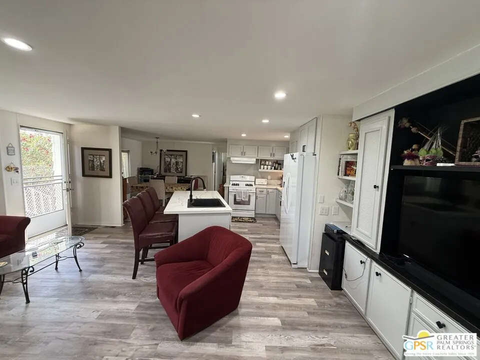 WOW! Come check out this beautiful furnished home located in Hidden Springs Country Club, a 55+ active community in Desert Hot Springs. This 2 bedroom, 2 bath home boasts a remodeled kitchen with so much storage and prep space. Newer appliances, a large center island, and open concept space that includes living area, make this an entertainer's dream. Enjoy morning coffee or evening cocktails from your covered deck with stunning mountain and golf course views. Make your way around the lush executive course, or tour the park in the included golf cart. Community amenities include tennis and pickle ball courts swimming pool and 2 spas, sauna, gym, clubhouse, and so much more. There is even a dog park for your furry family members. Hurry this won't last long! Park approval required for residency.