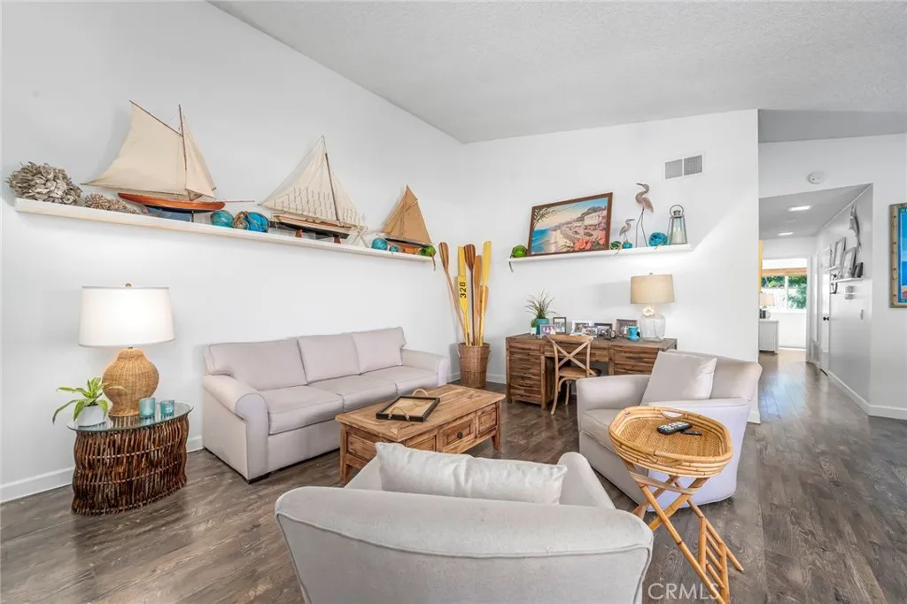 SERIOUSLY!….Do not make an offer on another home until you’ve toured this one first!!! True pride of ownership does not begin to describe this DREAM of a home! Located in the highly coveted guard gated 55+ Community of Huntington Landmark. This bright and open end-unit Pacifica floorplan which shares only one common wall, has an OVERSIZED outdoor balcony accessed by two sliding doors which gives this home a beachy indoor-outdoor living feel. The home features newer double paned windows and sliding doors, newer vinyl wood flooring, newer refrigerator, newer dishwasher, newer washer and dryer, newer furnace, and newer water heater. The natural light that bathes this home will uplift anyone’s spirit who walks through the front door. Upon arrival, the outdoor landing is adorned with an array of meticulously curated plants and flowers. Once inside, the cathedral ceilings with skylight just adds to the voluminous feeling of space and freedom this home exudes! The well-appointed kitchen with stainless steel appliances has a window in front of the sink allowing you to look out onto the lush green open spaces and blue skies. The quiet interior location of this condo is situated far from neighboring buildings which affords you an immense sense of privacy! This condo also comes with a private garage with newer aluminum roll up door and remote, which is located right next to the building. Also, there is an ABUNDANCE of additional open parking spaces situated all around the building. If this ALL isn’t enough…the condo comes turnkey furnished (per inventory)! Most importantly, you will be surrounded by friendly neighbors that truly care and look out for each another! Please come and tour this home today and make the DREAM YOUR REALITY!