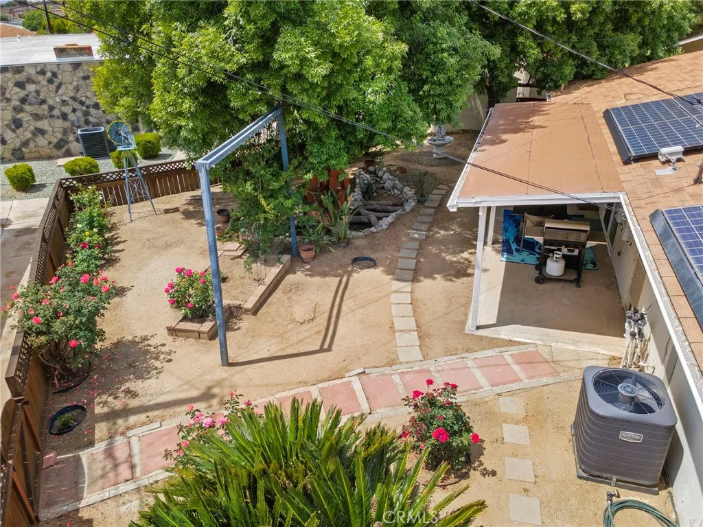 Energy-efficient home featuring an 19 paid Solar panels, Ecobee smart thermostat with remote access, paired with a Maytag AC and furnace system. Enjoy long, comfortable showers with your brand new water heater and ample storage including a large linen closet. The hall bath boasts a premium Safe-Step walk-in tub, granite counters, brushed nickel finishes, and adjustable LED lighting for a spa-like experience. The spacious primary suite offers beveled mirrored closets, a designer ceiling fan, and serene views of your private rose garden. The upgraded primary bath includes a low-step tiled shower, travertine flooring, and stylish finishes designed for comfort and accessibility. A versatile secondary bedroom can serve as a guest room, office, or media space with scenic mountain views and a full wall closet. Situated on one of the largest lots in the community, the backyard is a true retreat, featuring a patio, private greenbelt access, pond with waterfall (Not turned on at the moment), mature trees, fruit tree, storage shed, back gate door just steps away from pool and clubhouse, and a stunning rose garden with over 30 varieties.The bright laundry and garage area offer flexible space for a workshop, gym, or potential ADU, complete with upgraded lighting, flooring, and ventilation. Conveniently located within walking distance to Echo Hills Golf Course, offering beautiful scenery, peaceful surroundings, and outdoor enjoyment.