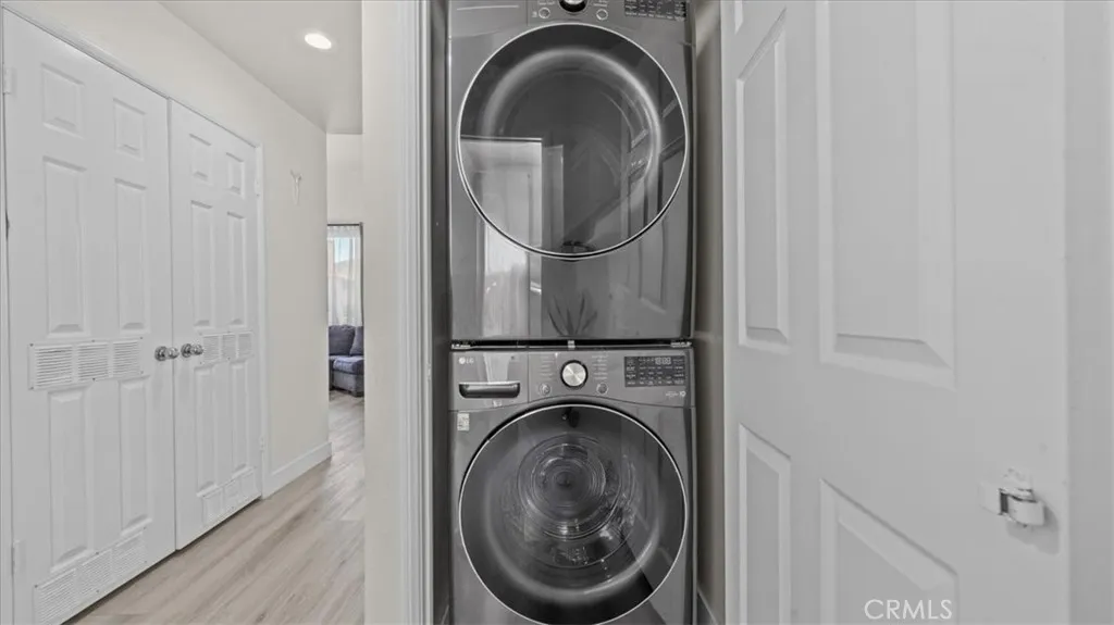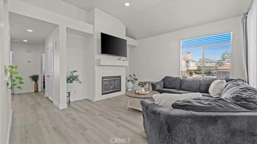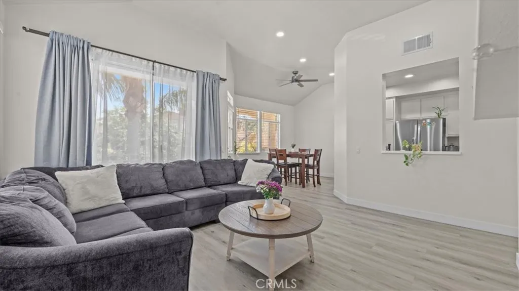Welcome to this beautifully upgraded end-unit, condo located in the highly sought-after Sierra Del Oro community—just minutes from Orange County. Exit the 91 off Green River Road. This turnkey home features modern laminate flooring throughout, fresh white interior paint, and recessed lighting with dimmers, creating a bright and inviting atmosphere. Both bathrooms have been fully renovated, one as a sleek walk-in shower and the hallways one with a bathtub, updated vanities, new toilets, and contemporary fixtures, offering a spa-like feel. The kitchen has been tastefully refreshed with new hardware and clean modern finishes, seamlessly connecting to the open-concept living and dining area. It features a new stove range and microwave with exhaust. Do laundry from the comfort of you home and enjoy one car detached garage and one carport parking. The private balcony offers peaceful surroundings, along with a community where you can enjoy amenities including a pool and spa. Ideally located near the 91 freeway, shopping, dining, and top commuter routes—perfect for those working in Orange County. This is a rare opportunity to own an upgraded home in one of Corona’s most desirable commuter communities.