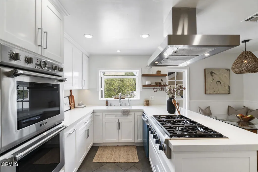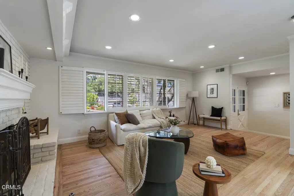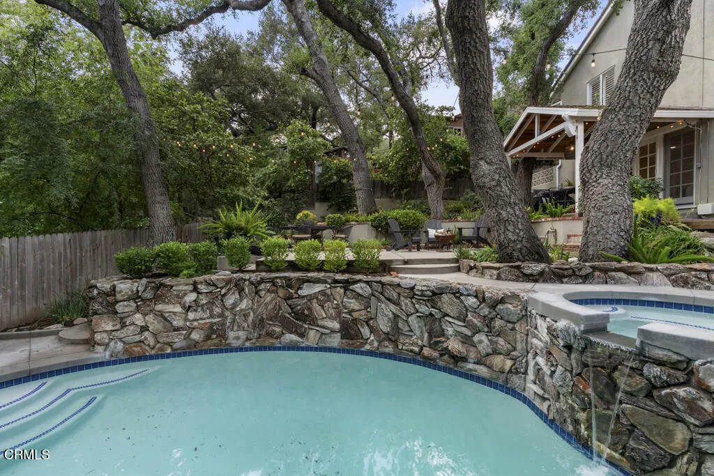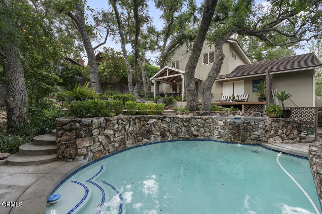 Tucked away in the private Glenwood Oaks enclave of Crescenta Highlands, this beautifully updated home offers a rare blend of refined living and natural serenity. From the moment you arrive, the property evokes a sense of peaceful retreat--feeling worlds away from the city while remaining conveniently close to everything you need. Inside, the home features two spacious, light-filled living rooms with natural hardwood floors. One showcases a cozy fireplace, while the other is enhanced by custom built-in cabinetry. Both spaces open through elegant French doors to private outdoor patios, creating a seamless connection between indoor comfort and outdoor living. The chef's kitchen is thoughtfully designed for both everyday use and entertaining, featuring a professional-grade gas cooktop, double ovens with rotisserie, a Sub-Zero refrigerator, stone countertops, and a peninsula with seating. Adjacent to the kitchen, the dining area offers custom built-in seating--perfect for gathering with family and friends.Three generously sized bedrooms provide comfort and functionality, each complete with custom built-in closets. The two bathrooms are finished with exceptional attention to detail, including custom white oak cabinetry, marble and limestone countertops, Zellige and Cle tile, and designer plumbing fixtures. An effortless indoor-outdoor flow leads to the backyard, where lush landscaping surrounds multiple areas for lounging, dining, and entertaining. The grotto-style pool and spa--with a cascading waterfall--create a tranquil, resort-like setting ideal for relaxing at the end of the day. Just moments away, a nearby trailhead with a flowing stream offers an easy escape into nature. With close proximity to CV Park, a dog park, local eateries, boutiques, Montrose Shopping Park, and award-winning Blue Ribbon schools, this exceptional property offers both peaceful seclusion and vibrant community living that will be coveted by many.