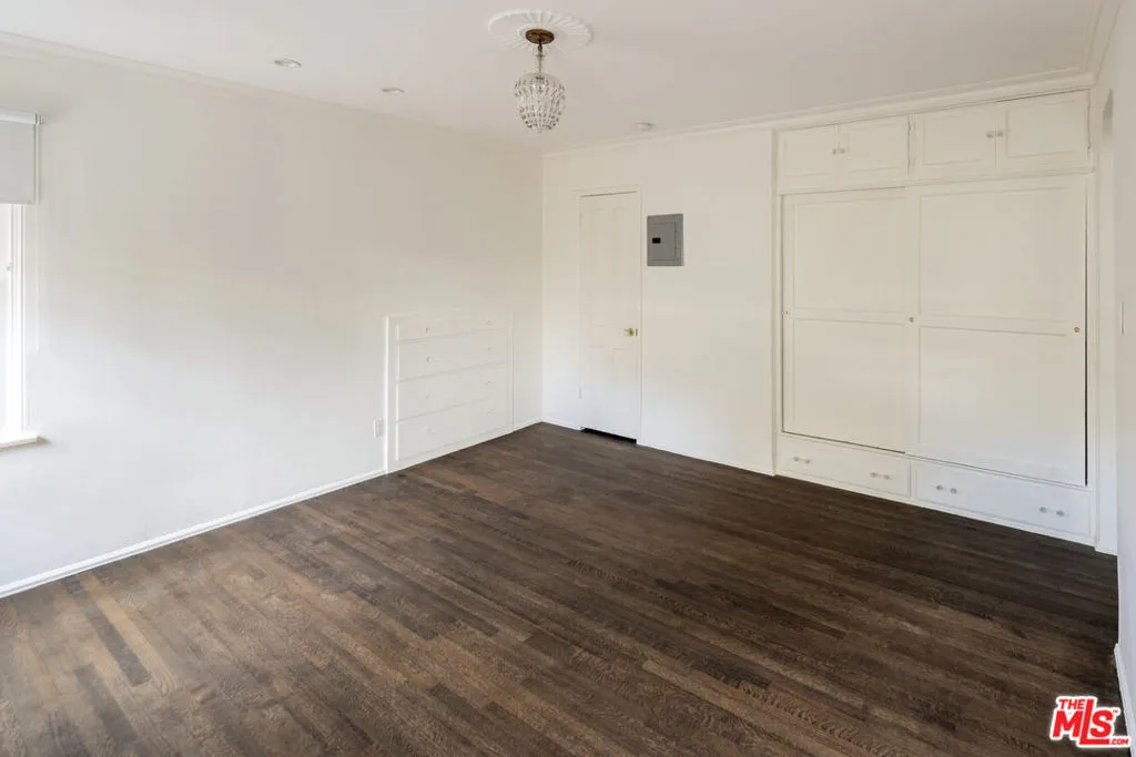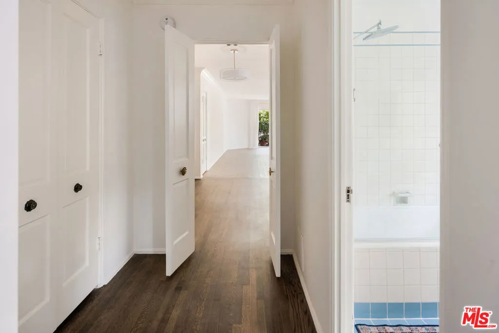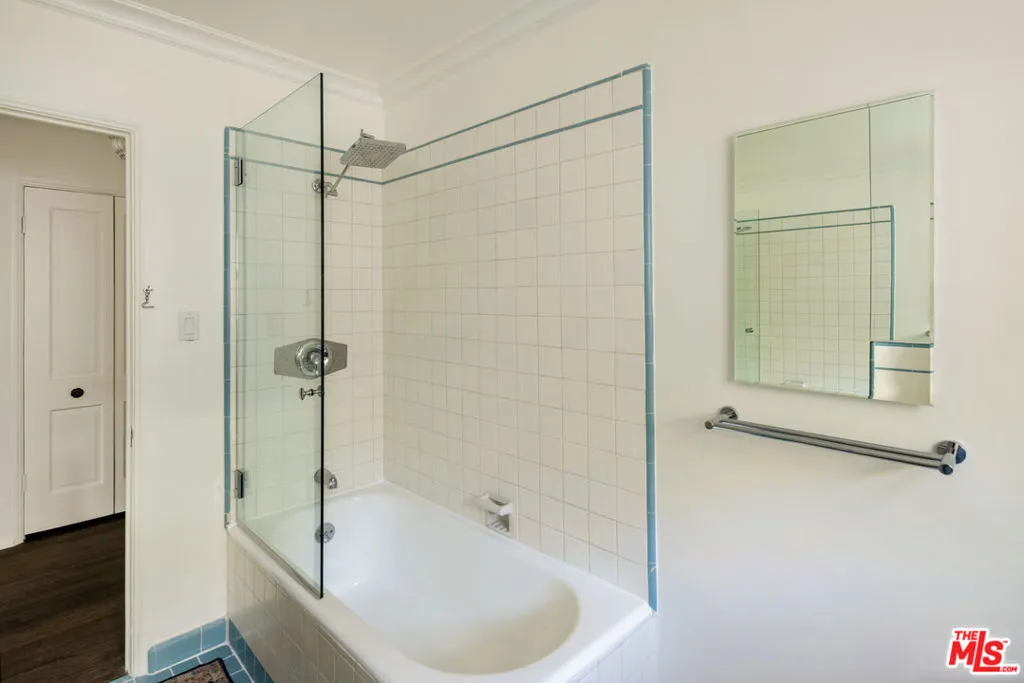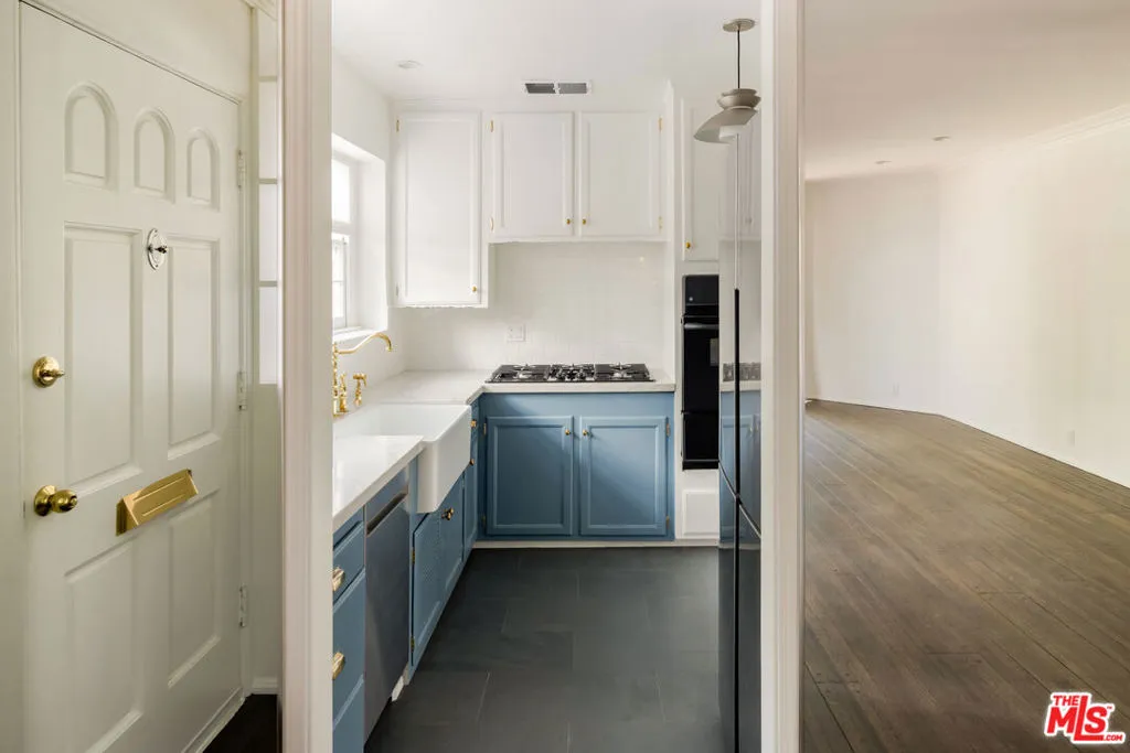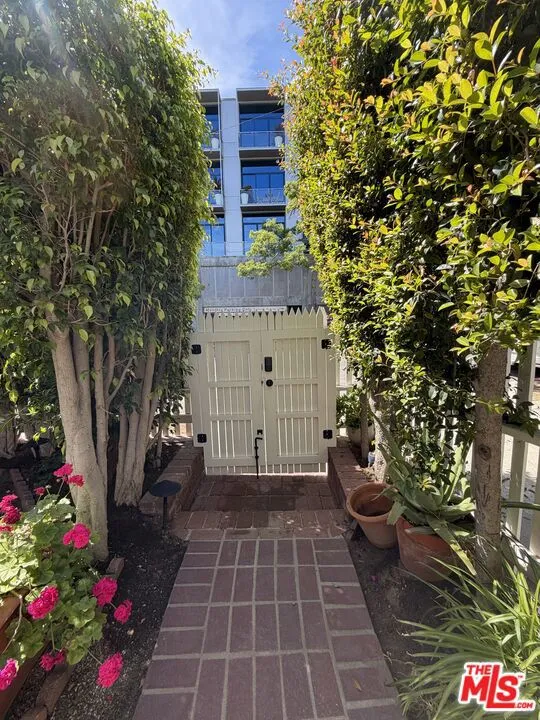 West Hollywood Gem :: In the coveted Cory Apartments :: Private Garden | 1 BD / 1 BA | 860 Sq Ft. Charming one-bedroom retreat in prime West Hollywood with gated private entrance through a beautiful brick walkway. Sun-drenched living room with dark hardwood floors and large sliding glass door opening to your own private fenced garden. Kitchen features quartz countertops, slate floors, farm sink with brass hardware, stainless steel appliances, and a garbage disposal. Renovated bathroom with original vintage tile, large soaking tub, and glass shower door. Thoughtful details include original crystal chandeliers, recessed lighting, blackout shades, and abundant built-in storage. In-unit washer/dryer, mini-split A/C and heating, one carport space, Ring doorbell, and on-site manager. Steps from Soho House, Boa, and the flats of Beverly Hills.