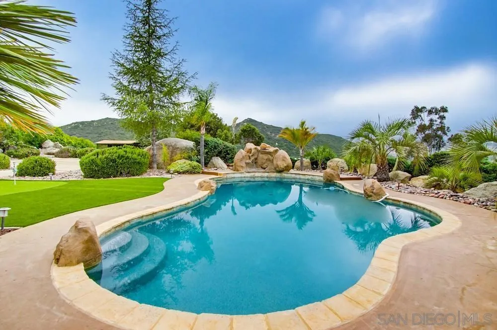 Offering privacy, scale, & resort-style living experience. Set on a spacious 2 acre lot w/ panoramic views, home has been transformed w/ modern design, high-end finishes, & an open layout filled w/ natural light. Expansive living spaces create seamless flow ideal for both everyday living & entertaining. The centerpiece of property is its indoor-outdoor living space w/ it's own dedicated HVAC. Private outdoor retreat amenities feature resort-style pool, water feature, BBQ area, putting green, & multiple areas... ...designed for relaxing & hosting. Large usable hardscape outdoor area w/ potential for sport courts or additional outdoor entertaining to fit a variety of lifestyles. Located just minutes from shopping, churches & schools, this home offers the perfect balance of convenience & privacy while capturing the peaceful setting Alpine is known for. A rare opportunity to own a property that delivers lifestyle, space, & design at a level seldom available in the area. As an added bonus, home is located across the street from the Palo Verde Lake, Private Clubhouse entrance.