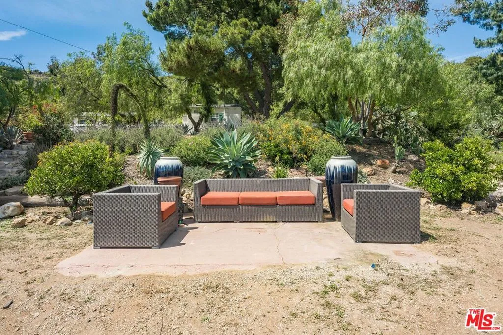 Here is your opportunity to own a true piece of Malibu history. Located at the top of a scenic country road in central Malibu, behind gates and framed by hand-laid rock walls, this charming single-level sprawling ranch home with ocean views offers a rare blend of history, privacy, character, and versatility. Once part of the historic Baller family cattle ranch, the property is agriculturally zoned for livestock and crops, creating a unique opportunity to enjoy both an exceptional lifestyle and highly usable land. The residence is filled with warmth and timeless appeal, featuring plank-vaulted wood ceilings, rich wood floors, built-ins, and a beautiful stone fireplace. Double doors from the dining room open to a screened porch where panoramic 180-degree ocean views stretch from the Queen's Necklace to Catalina, up the coast toward Santa Barbara and beyond, creating an unforgettable setting for morning coffee, sunset dinners, or quiet moments surrounded by nature. Thoughtful upgrades enhance both form and function, including a 2022 three-stall Castlebrook barn, new fencing and grading, and multiple flat pads offering room for a pool, sport court, outdoor kitchen, or expanded entertaining spaces. The property continues to unfold with incredible flexibility, including two standalone bungalows that may serve as guest accommodations, income-producing spaces, an art studio, or a recording studio. A garage with guest parking, vegetable beds, and a charming chicken coop add to the property's functionality and ranch lifestyle appeal. Mature fruit trees and an abundance of nearby hiking trails offer vast canyon and ocean views, with paths leading to creek beds just beyond your back door. The grounds are further elevated by majestic 100-year-old stone pines, along with mature trees and established landscaping that provide exceptional shade, privacy, and natural beauty throughout. With sweeping ocean views, a peaceful setting, and access to nature, this property lives like a private mountain sanctuary while remaining deeply rooted in Malibu history. Rarely does a property offer this level of charm, usable acreage, character, and potential in such a special setting. Call now to schedule your tour and make this Sunshine Mountain Malibu Ranch Home yours.