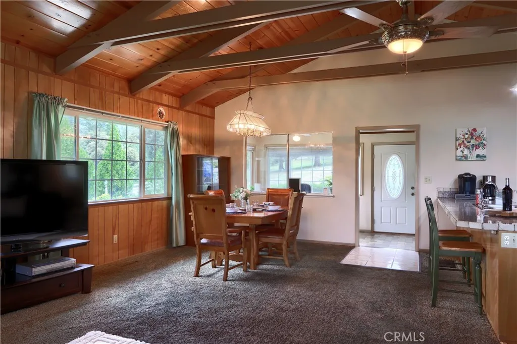 Welcome to your Mariposa Yosemite retreat—where comfort, charm, and usability come together in a peaceful, private setting just minutes from historic downtown Mariposa minutes to Yosemite National Park. Tucked away on a serene 0.70± acre parcel, this beautifully maintained home offers a light-filled open floor plan featuring stunning vaulted cathedral ceilings with exposed beams and warm tongue-and-groove wood accents, creating a true mountain-lodge ambiance. The spacious living area showcases a rock masonry fireplace with a high-efficiency woodstove insert, providing both cozy charm and practical heating. The kitchen is designed for function and style with granite tile countertops, stainless double sinks, a trash compactor, ample cabinetry, and a pantry—ideal for everyday living or hosting guests. The seamless flow between the living, dining, and kitchen areas makes this home perfect for entertaining. Enjoy beautiful views from the living area and embrace indoor-outdoor living from the covered porches—ideal for relaxing and taking in the peaceful surroundings. The usable land includes a garden area with space for expansion or customization to fit your vision. Additional highlights include ductless heating and cooling, an asphalt driveway, and a detached 2-car garage with abundant storage. Whether you’re seeking a full-time residence, weekend getaway, or investment opportunity, this property checks all the boxes. The adjacent lot is also available for purchase—call for details.