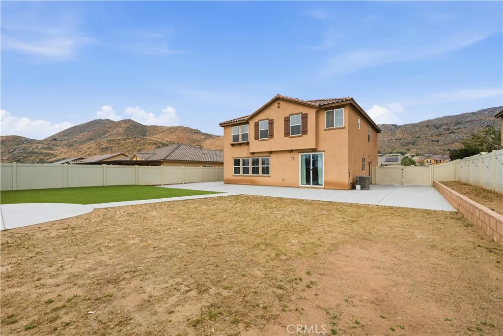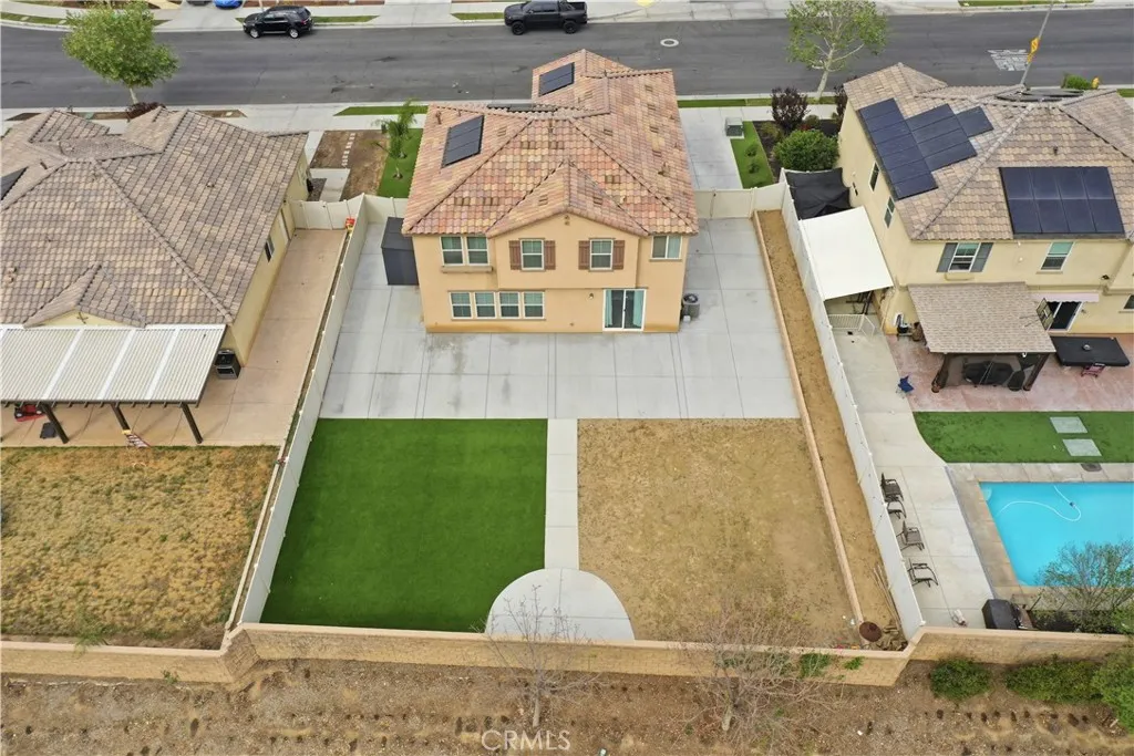 You can buy this home or rent this home for $3,500.00 per month. No lease to own. Just a regular 12-month lease at a time. Welcome to the highly desirable Cove Community in San Jacinto where comfort, efficiency, and modern upgrades come together in one exceptional home. This beautifully maintained 4-bedroom, 2.5-bath residence offers an open floor plan designed for both everyday living and entertaining. Step inside to find upgraded flooring, recessed lighting, and a spacious layout that flows seamlessly from the living area into a well-appointed kitchen featuring granite countertops and stainless-steel appliances. One of the standout features is the downstairs bedroom and bathroom, providing added convenience for guests, multi-generational living, or a private office setup. Upstairs, you’ll find generously sized bedrooms, including a primary suite with a super large walk-in closet. Situated on an expansive nearly 9,000 sqft lot, the backyard is truly a rare find. With artificial turf throughout, you’ll enjoy a clean, low-maintenance outdoor space year-round. The pool-sized lot offers endless possibilities for customization, while hardwired low-voltage landscape lighting creates an inviting ambiance in the evenings. RV parking and an extended driveway provide ample space for vehicles, toys, and guests. This home is also equipped with a solar lease that is incredibly affordable and designed to fully offset utility costs bringing long-term energy savings. For added convenience, a 240V Tesla Level 2 charger is already installed. With its thoughtful upgrades, oversized lot, and prime location, this home offers the perfect blend of functionality and lifestyle. Don’t miss your opportunity to own in one of San Jacinto’s most sought-after communities.