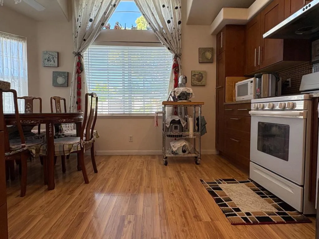 Location! Location! Location! Central Sunnyvale within walking distance to many convenient locations for dining and shopping. Great for work commuters. Beautiful 2 story contemporary style home. 2 bedrooms and full bath upstairs. Additional bedroom with full bath downstairs. Separate entrance for downstairs bedroom. Very safe and quiet park. Friendly neighbors.Located in Sunnyvale, this 3-bedroom, 2-bath home offers 1,286 sq ft of living space. The kitchen features an eat-in dining area and is equipped with a gas oven range, hood over range, dishwasher, and refrigerator. Laundry hookups are available for convenience. The property is part of the Sunnyvale elementary school district. This residence provides functional living with essential amenities in a well-established community.